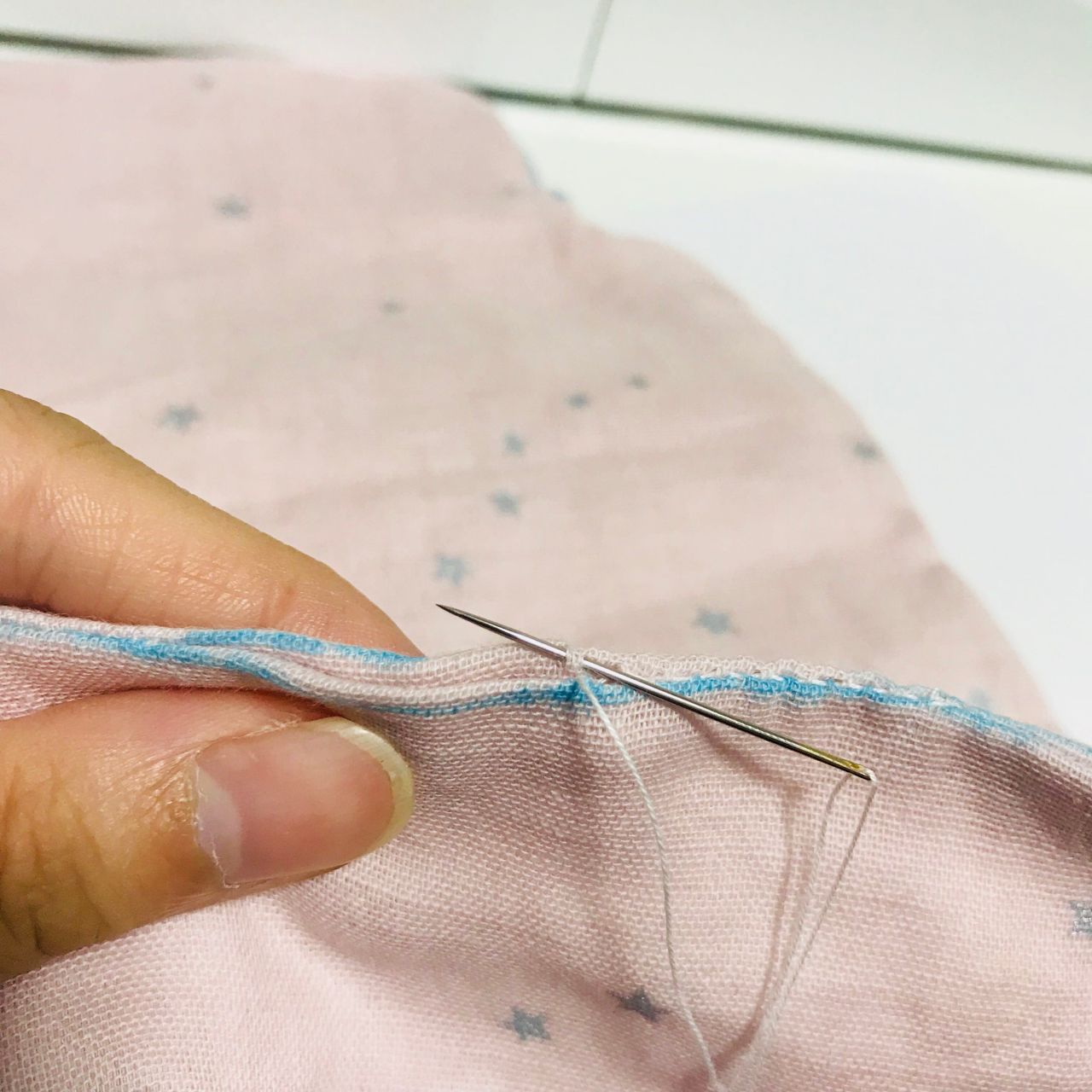(ミシンでも手縫いでも作れますが、手縫いの場合はガーゼがほつれやすいので、しっかり細かく縫いましょう)
