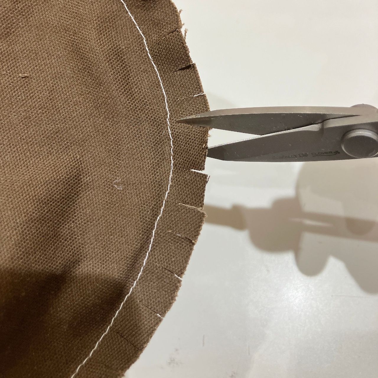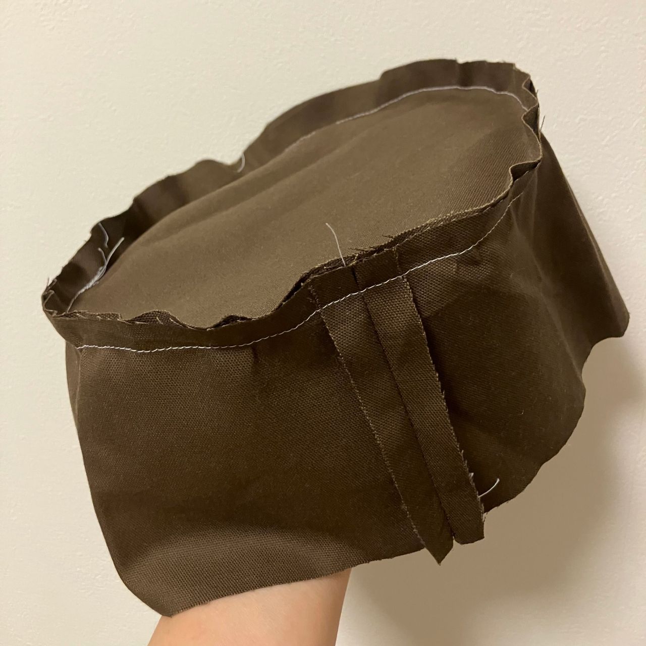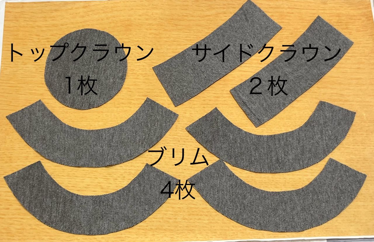 ⑤クラウン(表地)とブリムを縫い合わせる