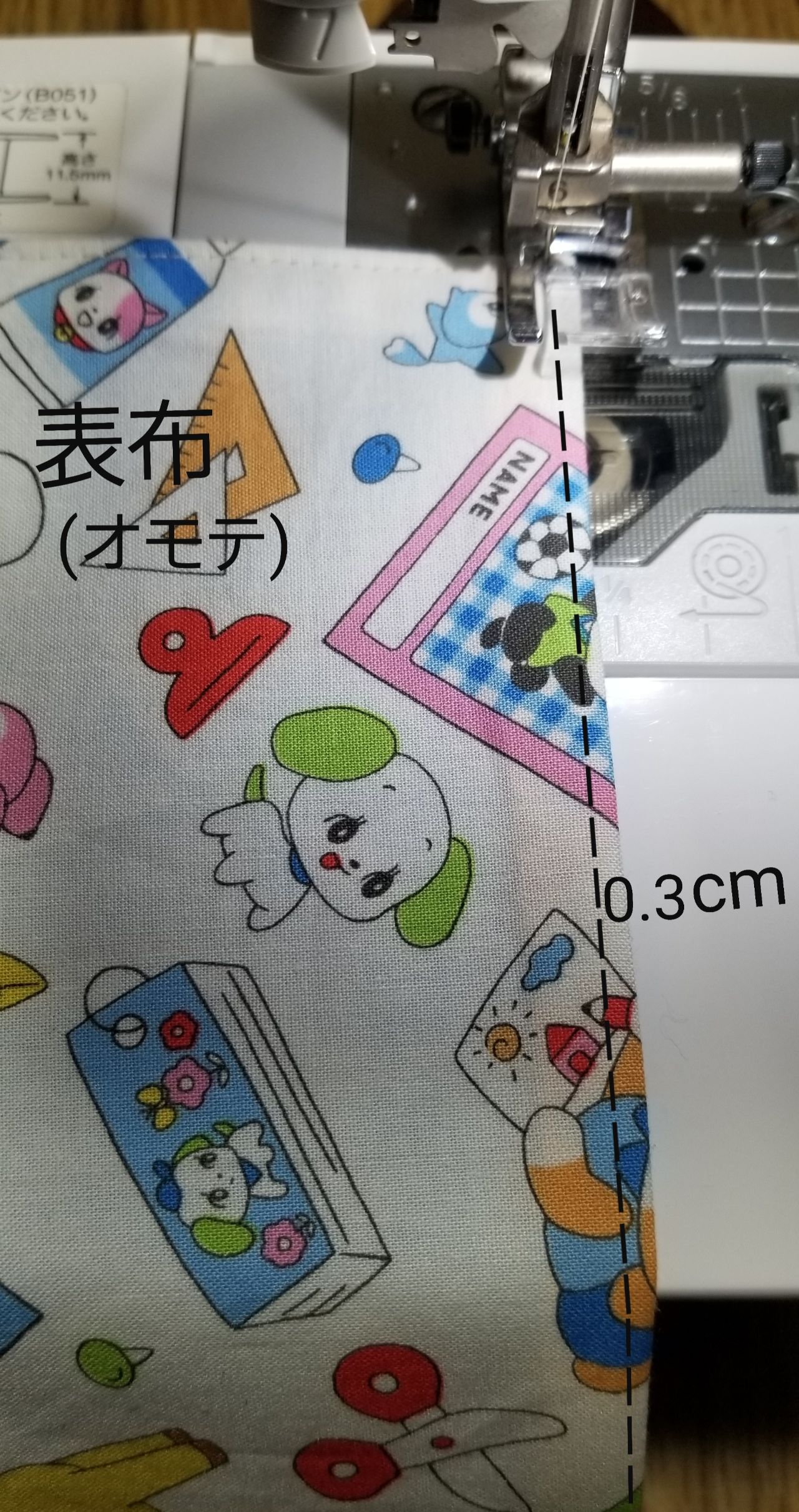 ②生地をそれぞれ中表にして、縫い代1㎝で縫う