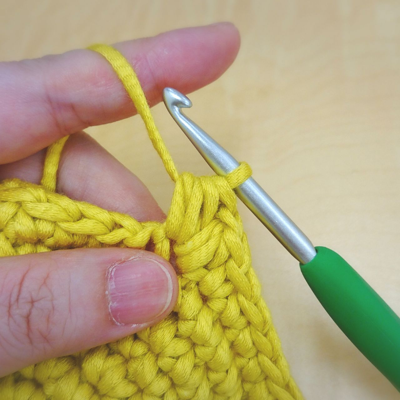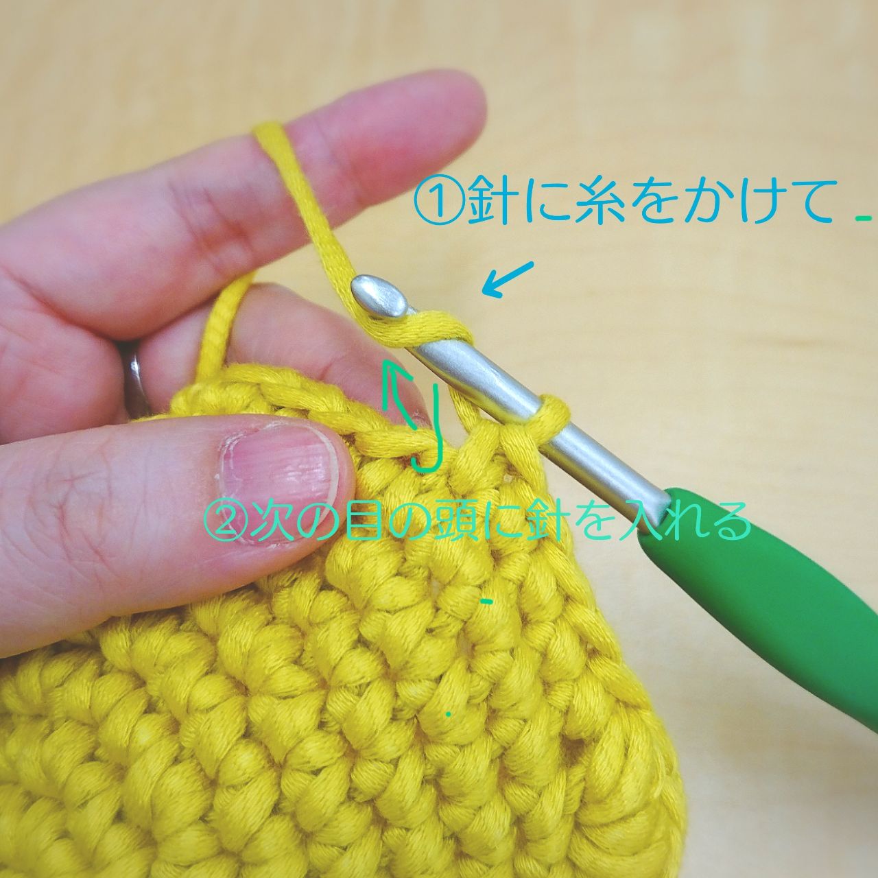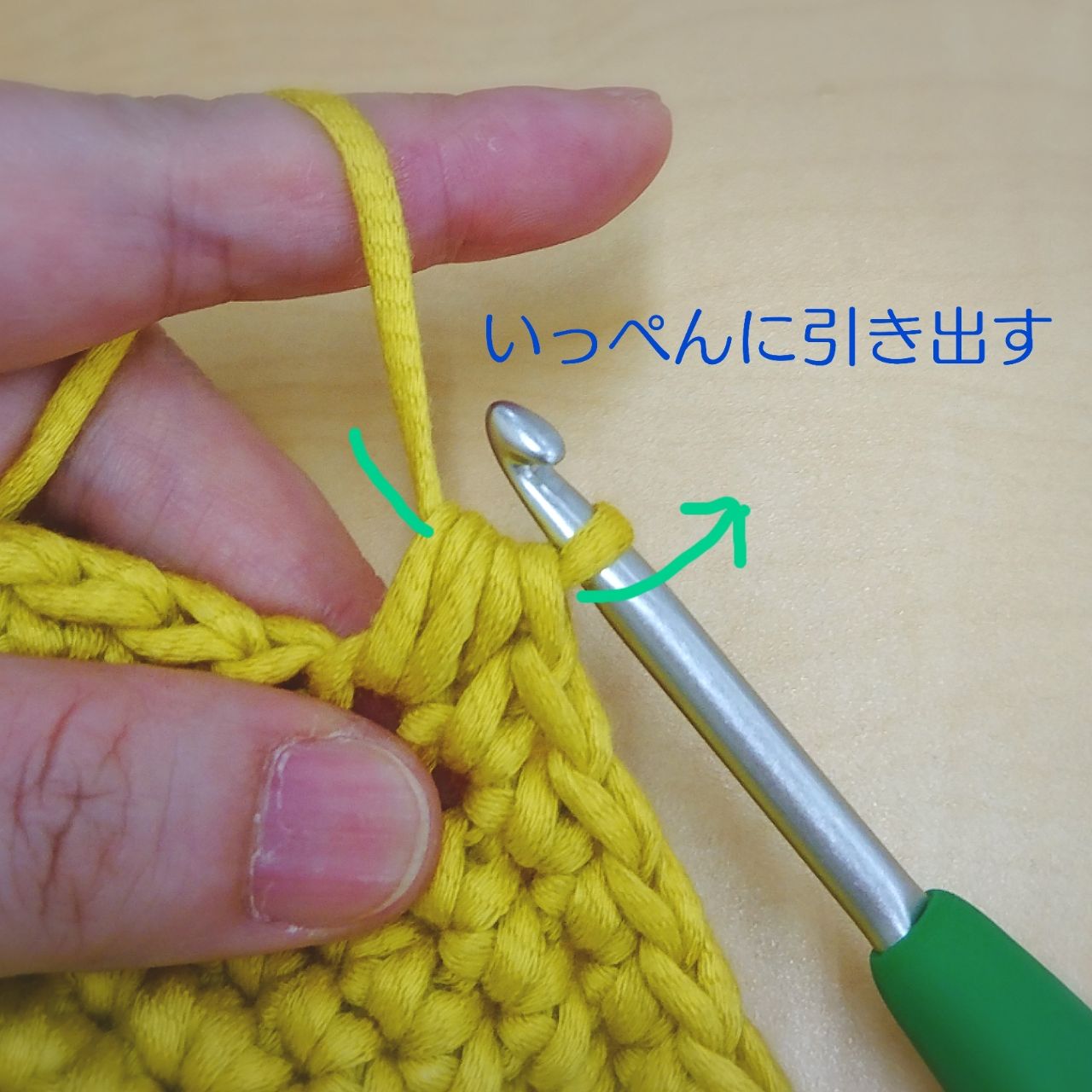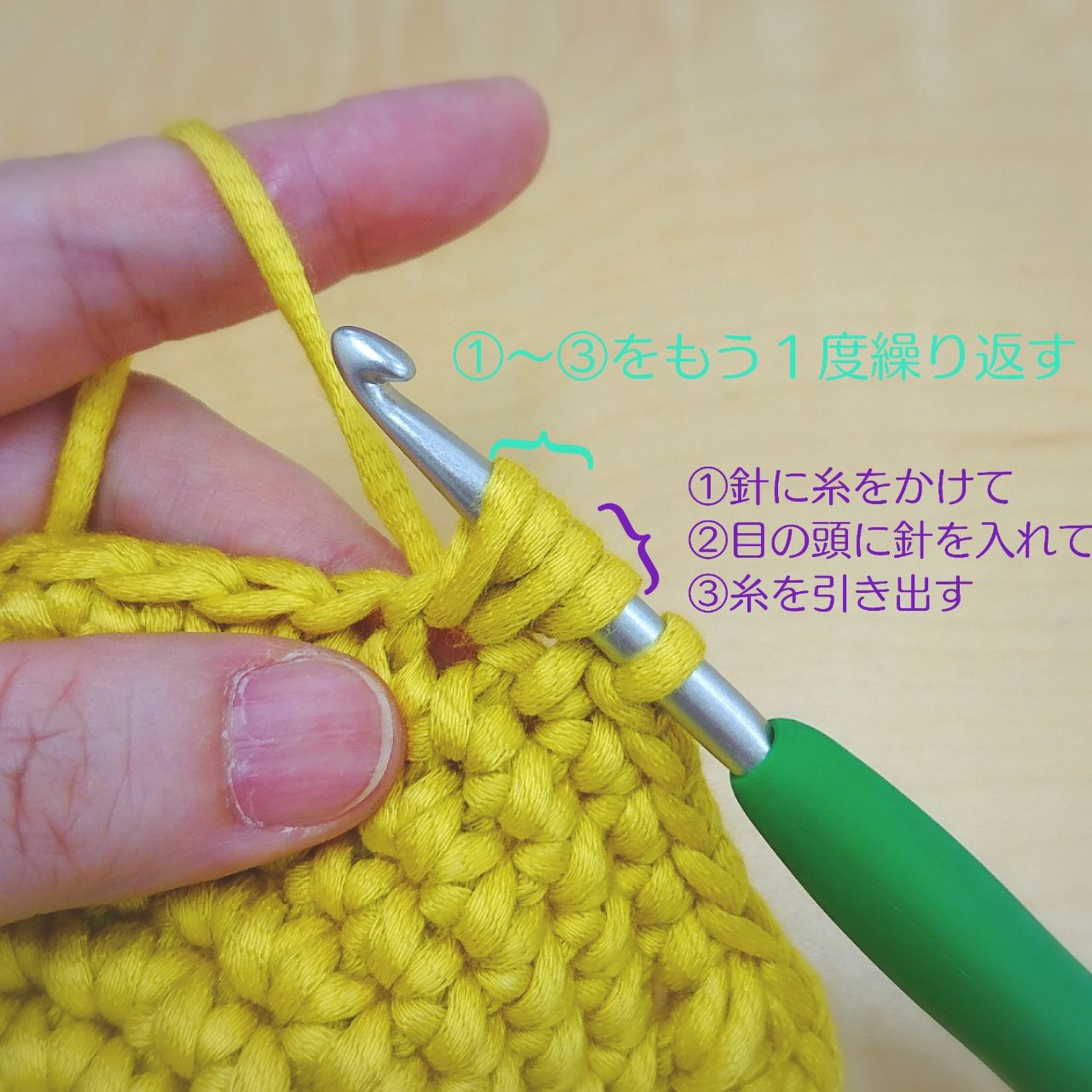 通常の中長編みの、最後に糸を引き出す手前までを2回繰り返したら、