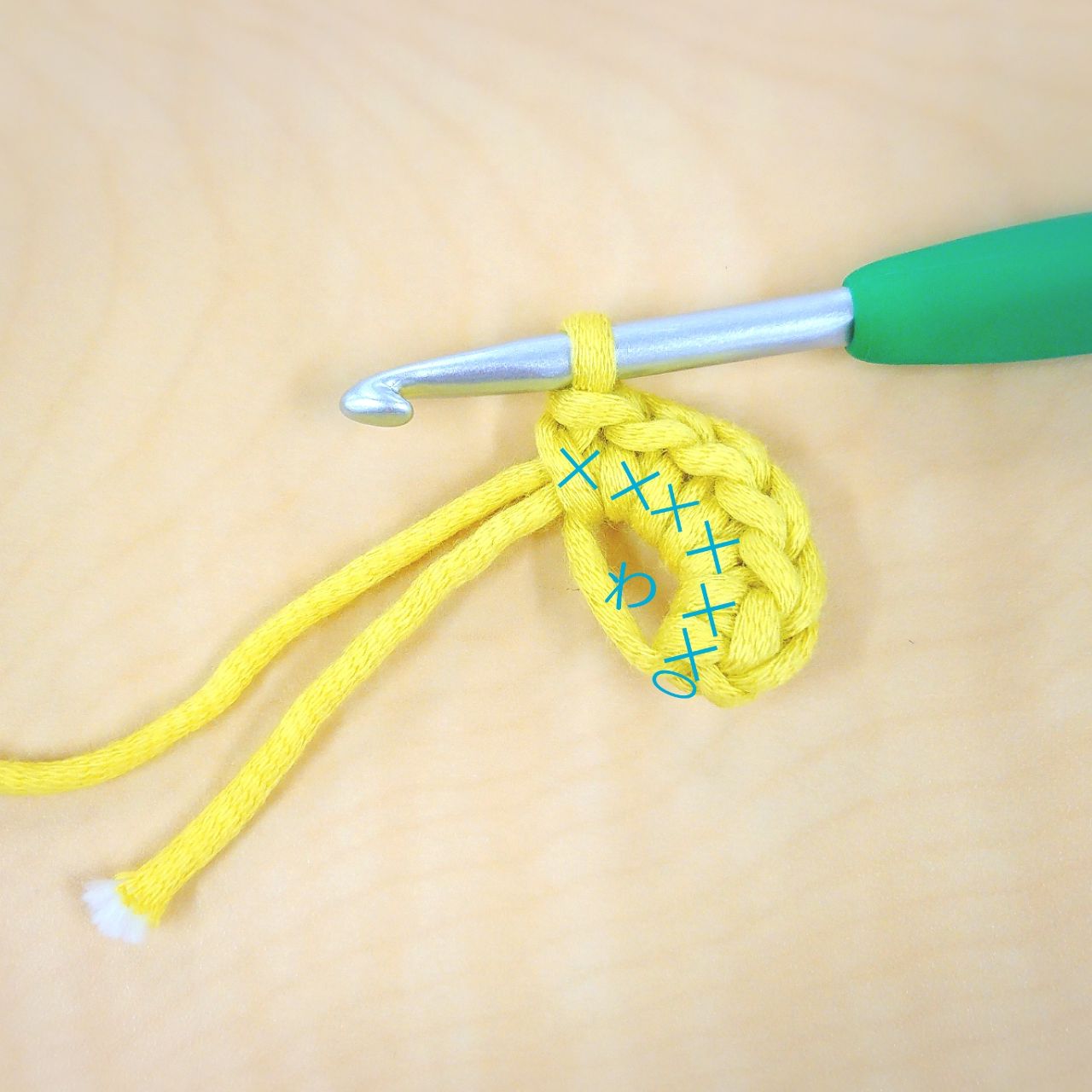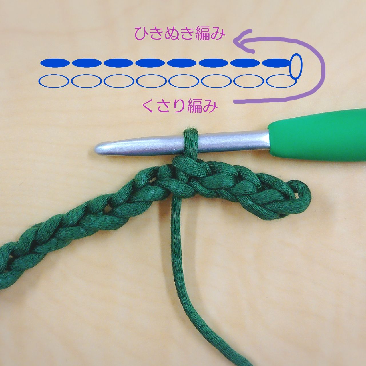 くさり編み170目編み、くさりの裏山と半目をひろってひきぬき編みで戻ります。