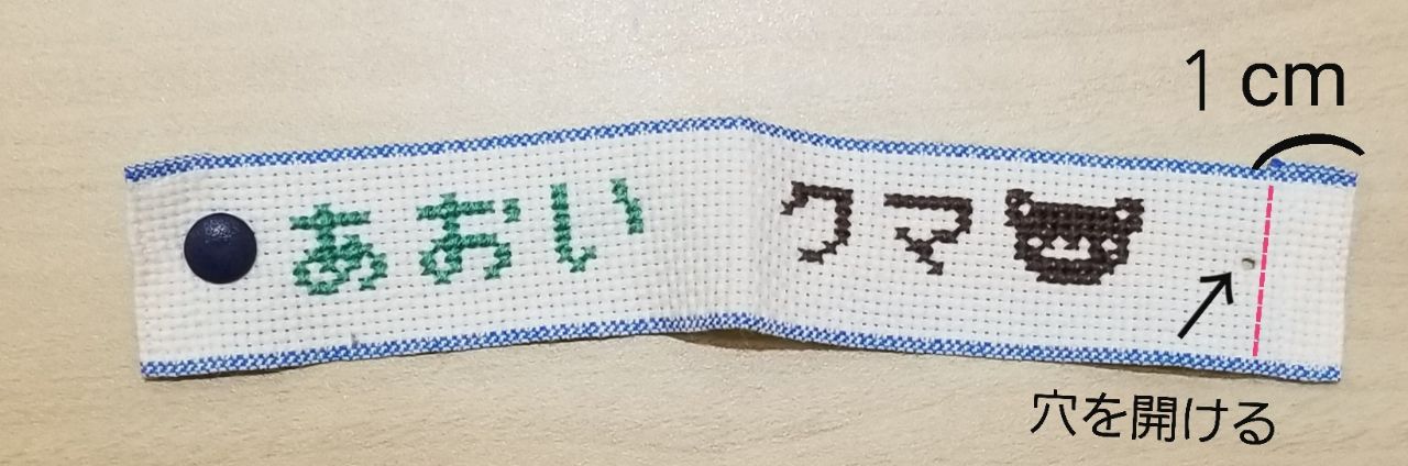 コットンテープを好きな長さでカットして、刺繍します(見本11cm)