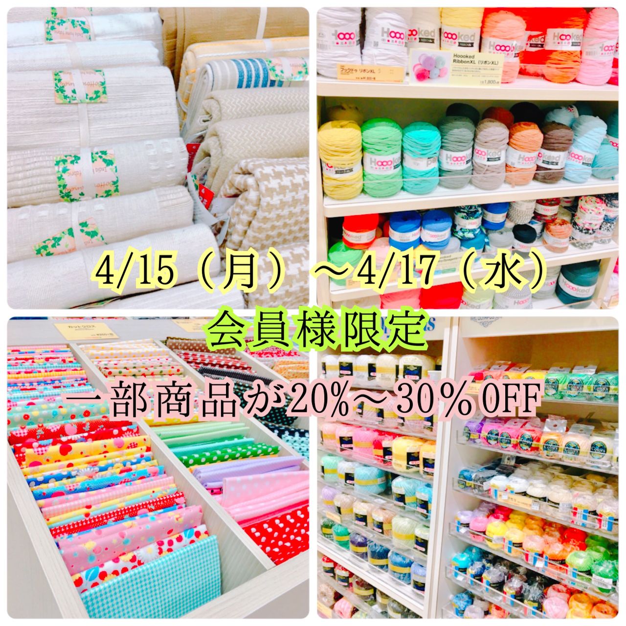 【3日間限定 4/15~4/17】会員様限定で一部商品がお買い得です!!
