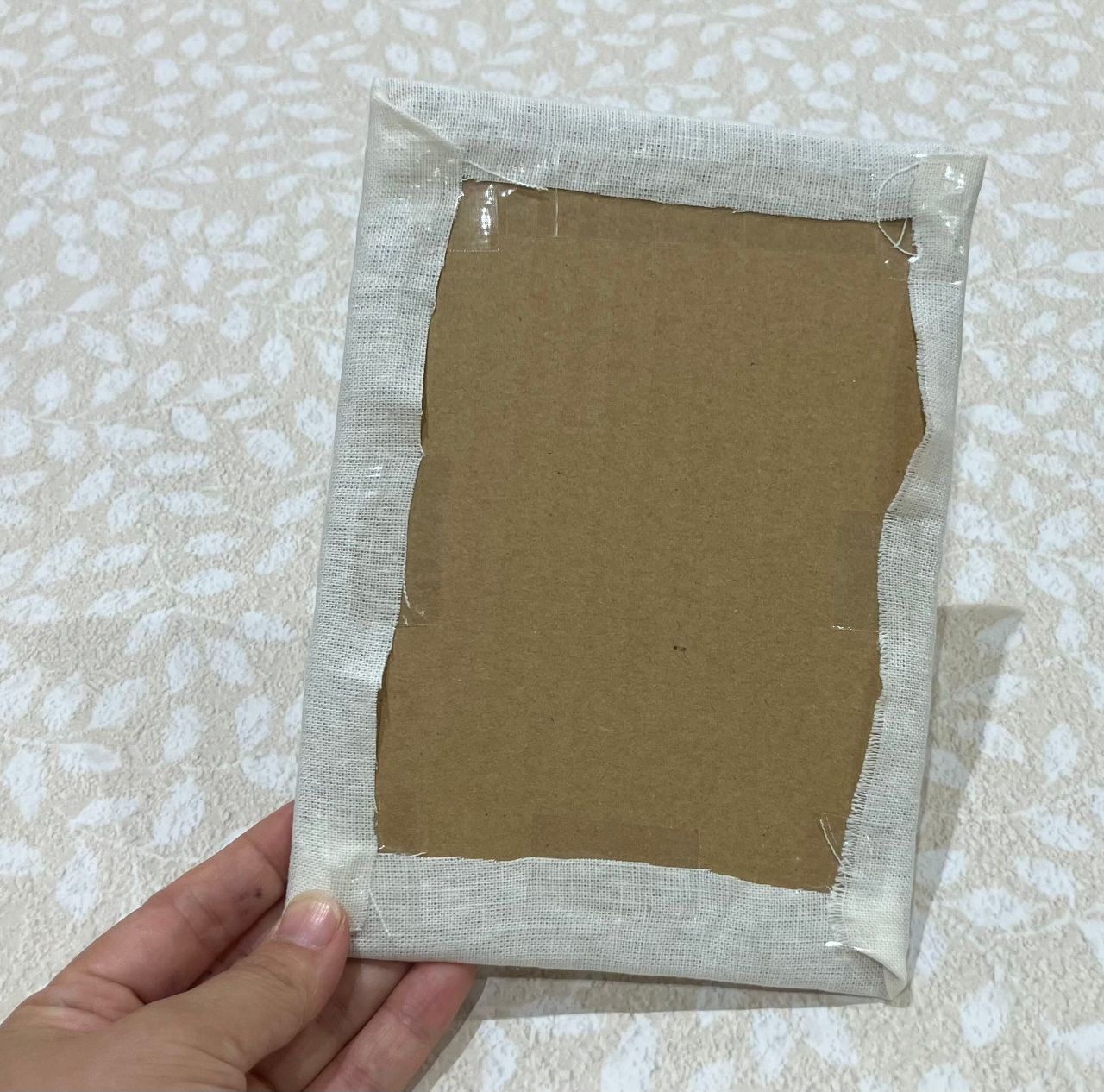 準備① ダンボールの土台に生地をテープなどで貼る