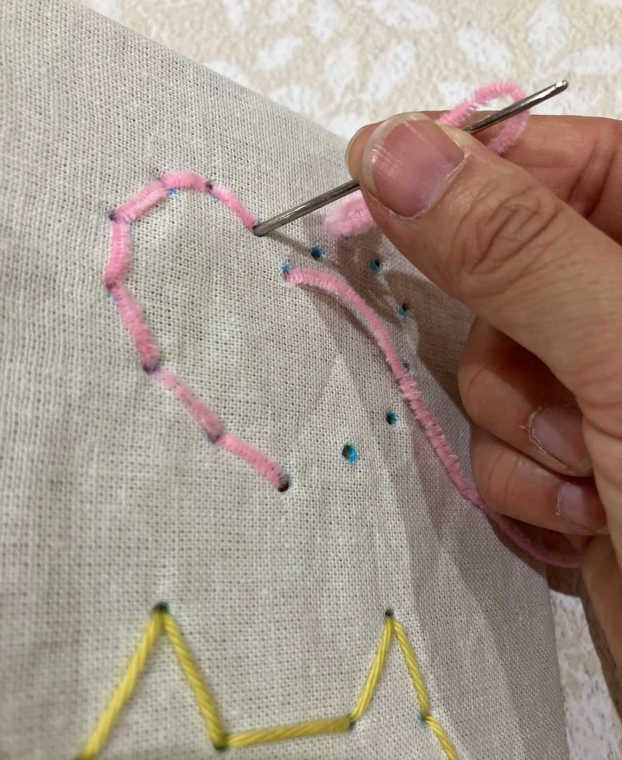 毛糸のとじ針を使って、刺繍をしてみましょう。