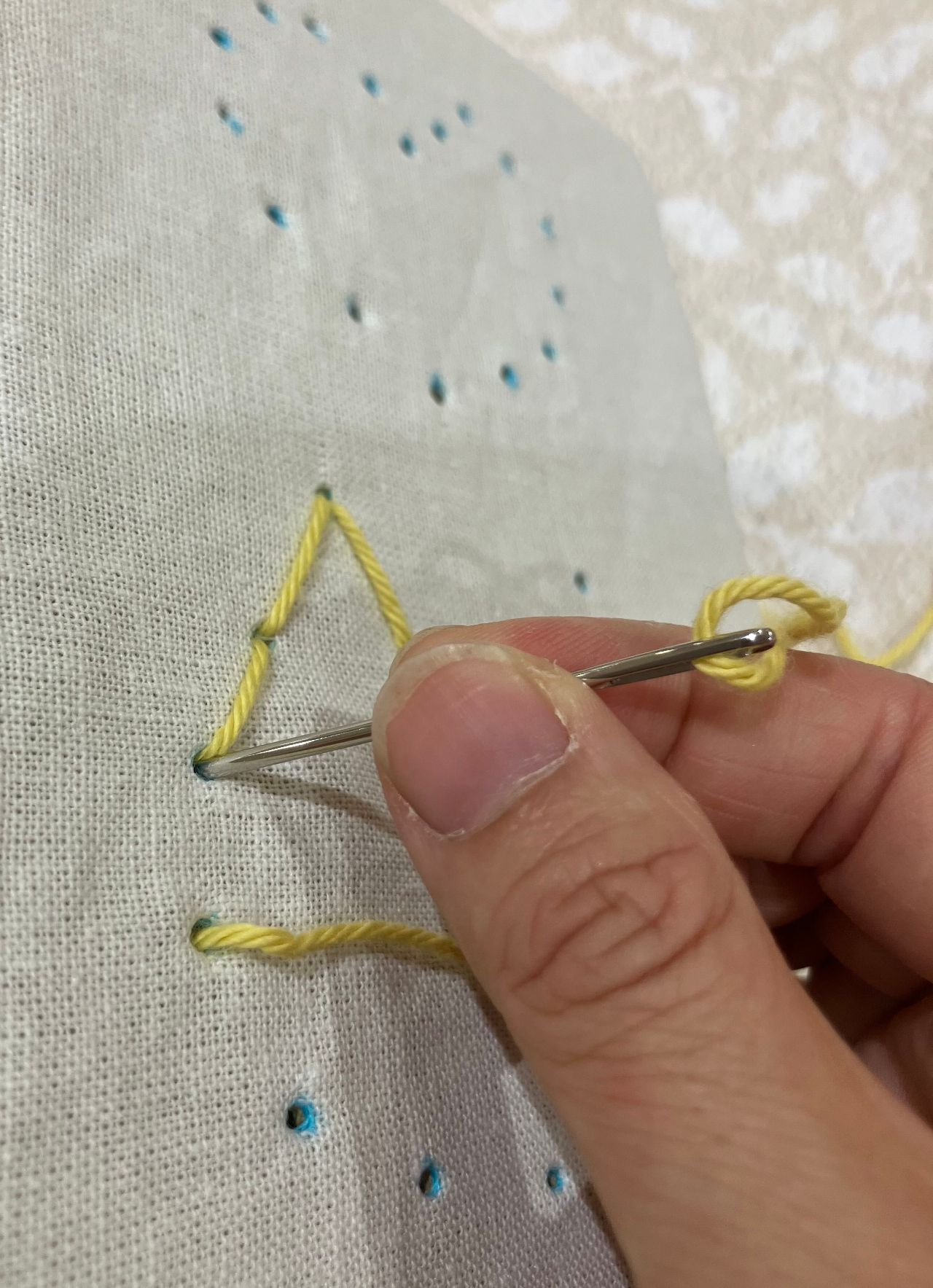 毛糸を変えて、また刺していきます。