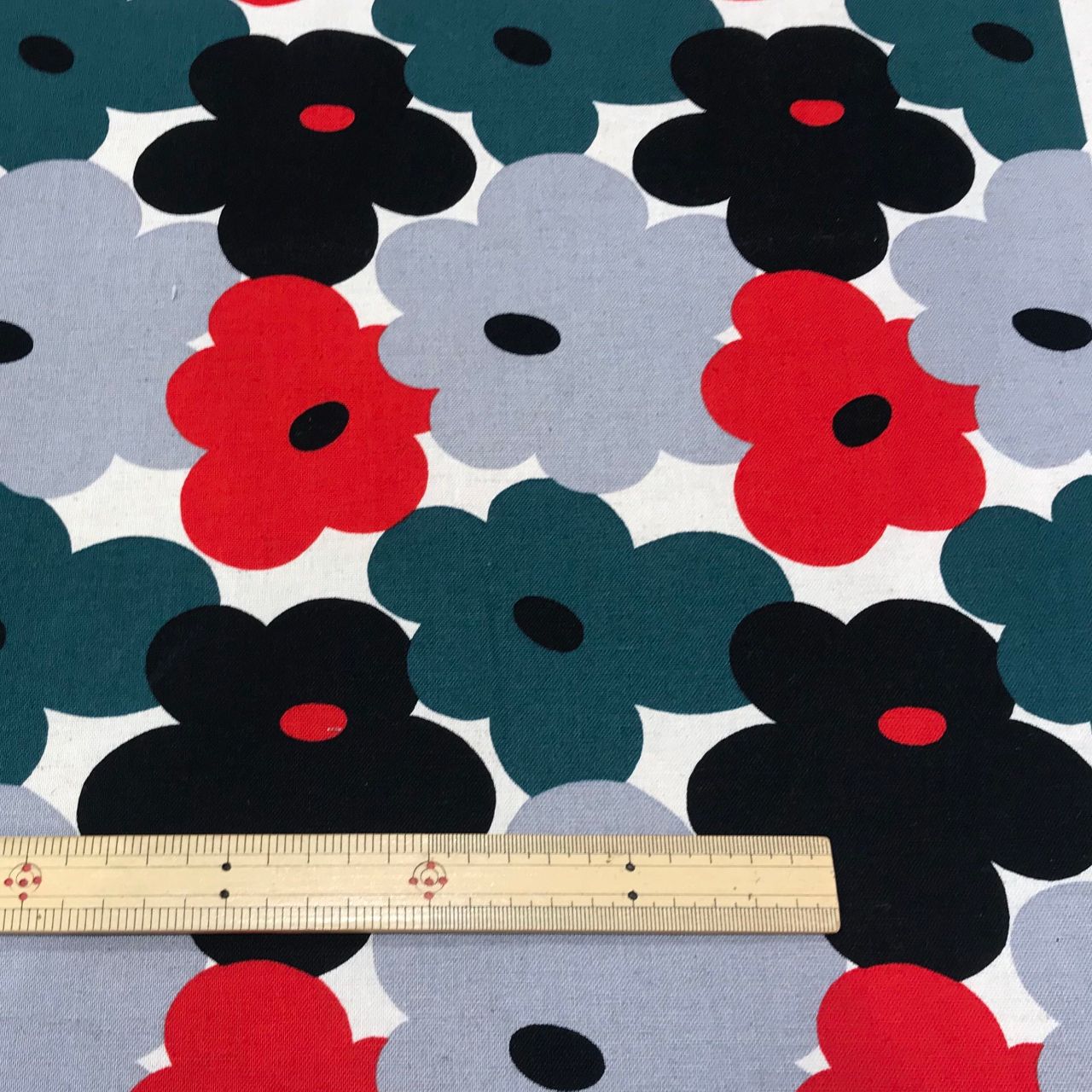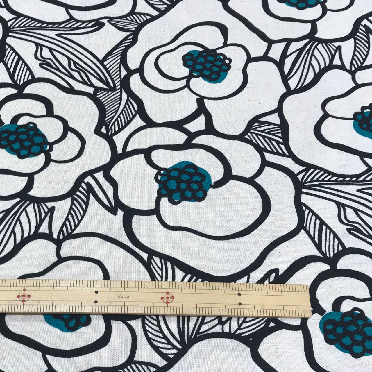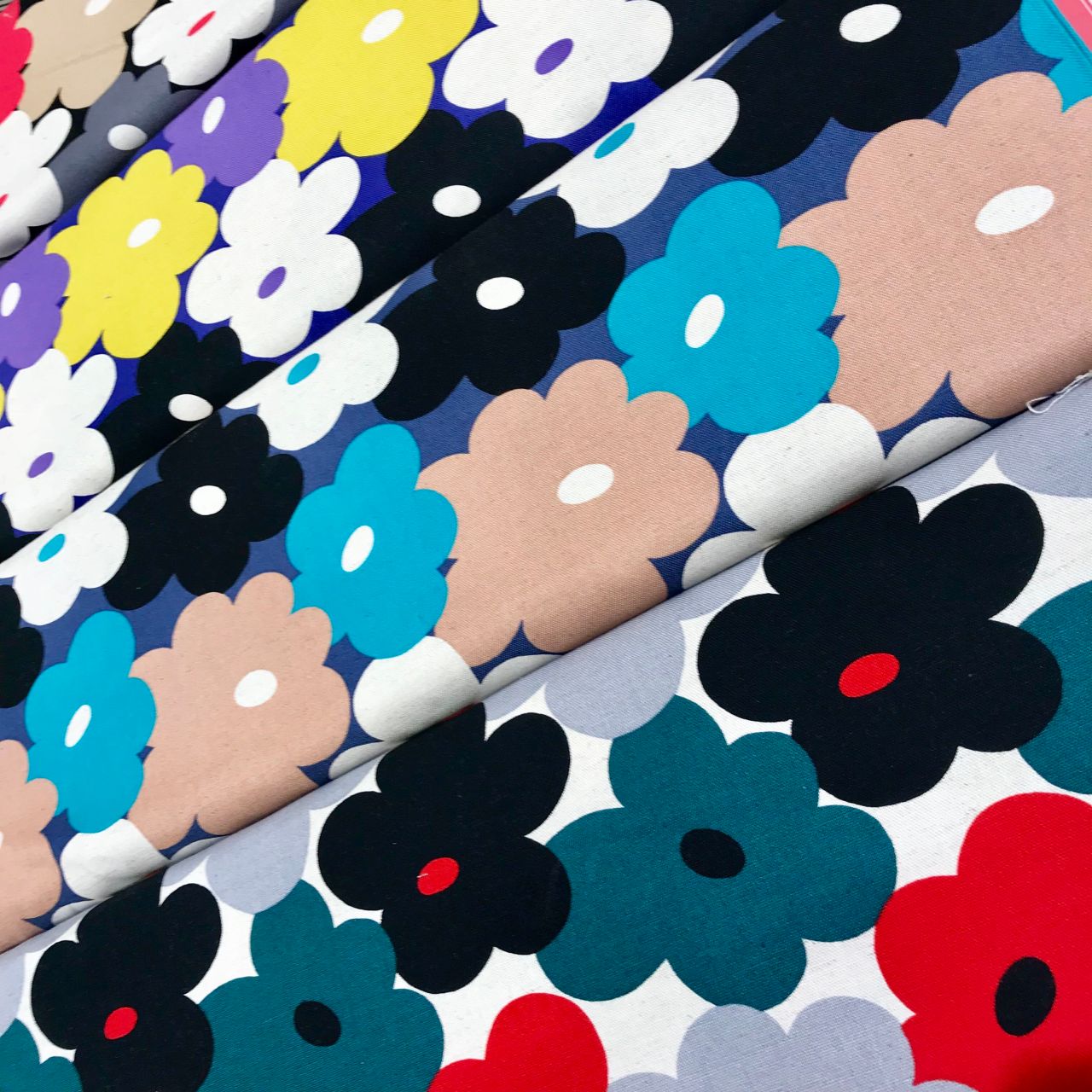 色柄のはっきりとした存在感のある綿麻生地です!配色が個性的でとっても可愛いです♪