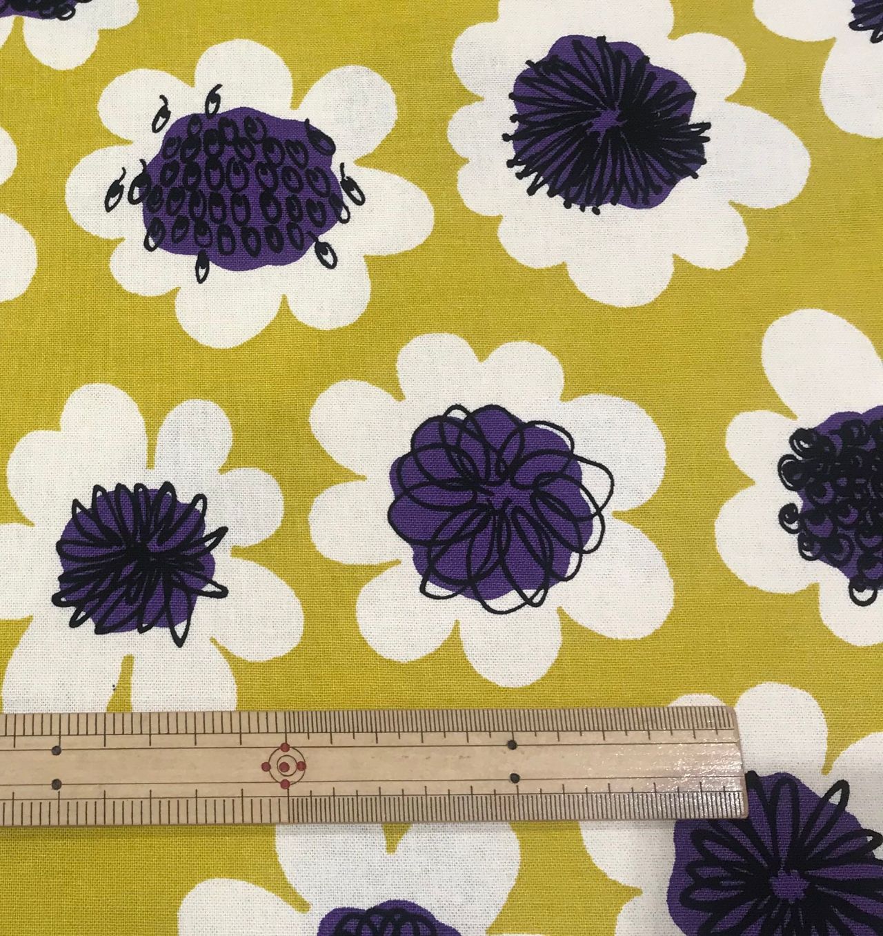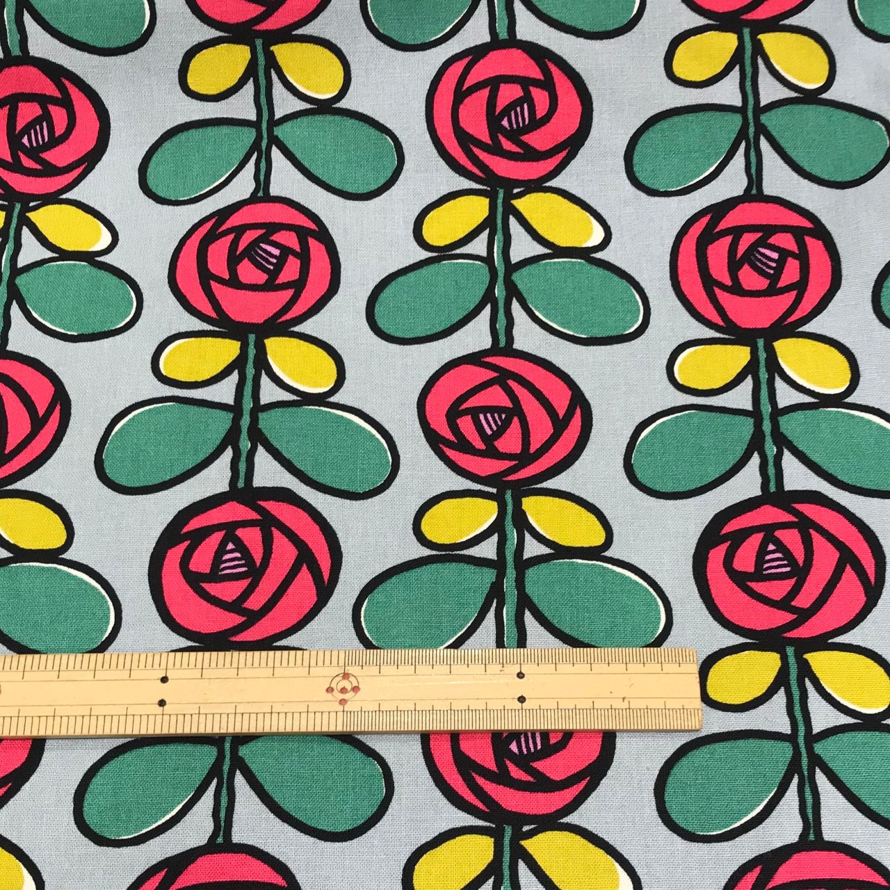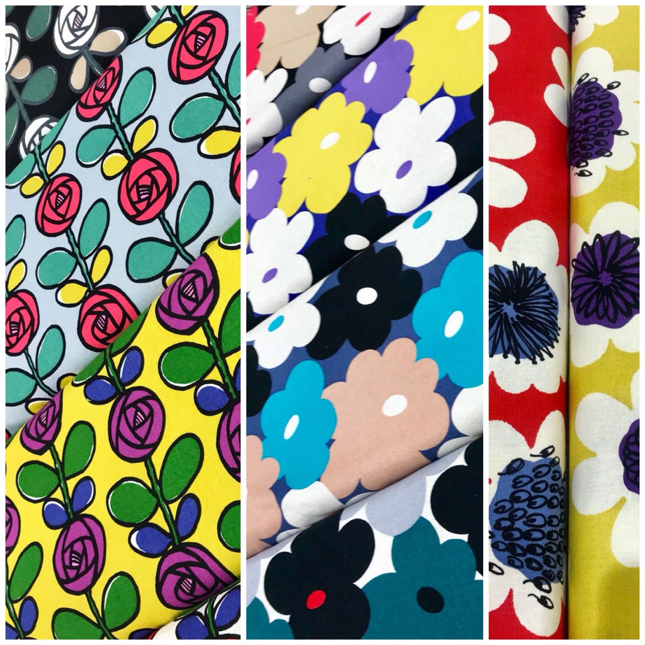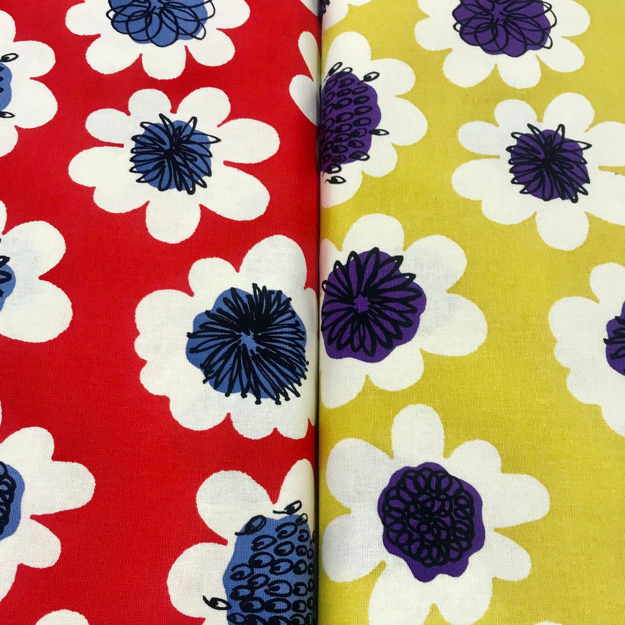 色柄のはっきりとした存在感のある綿麻生地です!配色が個性的でとっても可愛いです♪