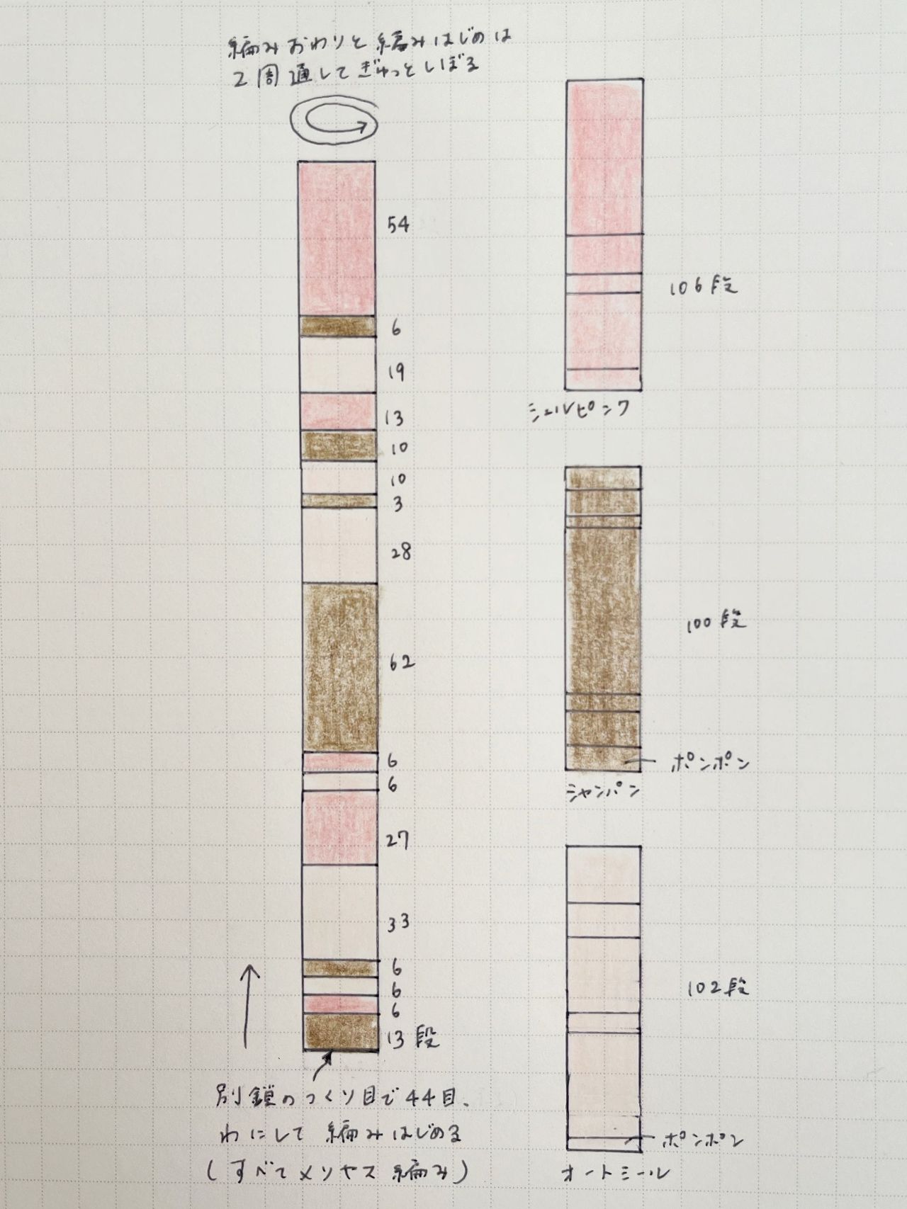 だいたい何段くらいかなと、簡単にですが計算した編み図がこちらです。