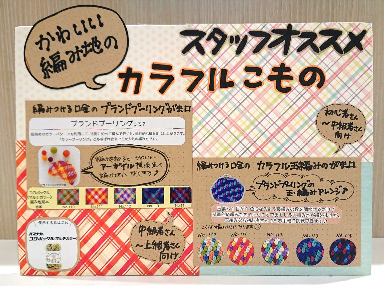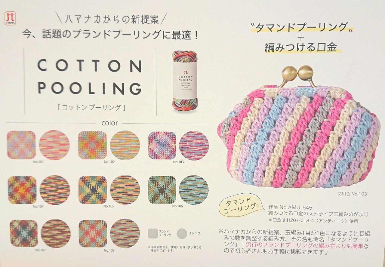 玉編みで規則的に編んで行くと、可愛いストライプ柄になっちゃう、コットン毛糸も登場しました☆