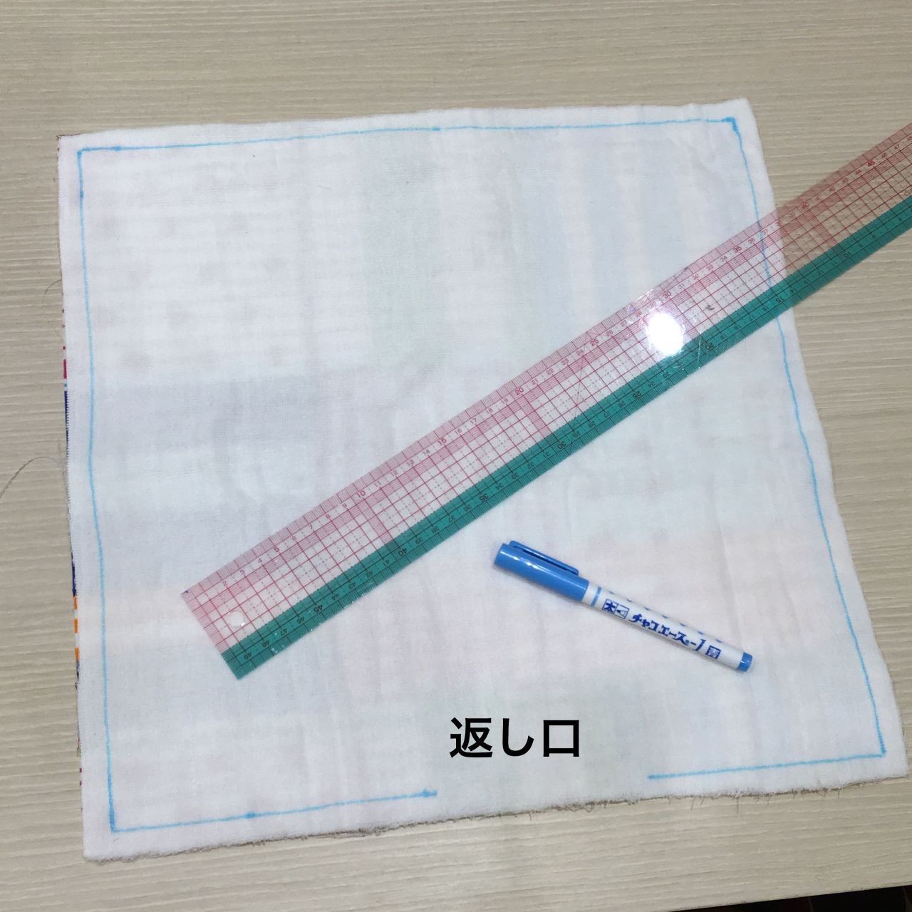 ①表布、裏布を中表に合わせて返し口約10㎝を残して一周なみ縫いをする(縫い代1㎝)
