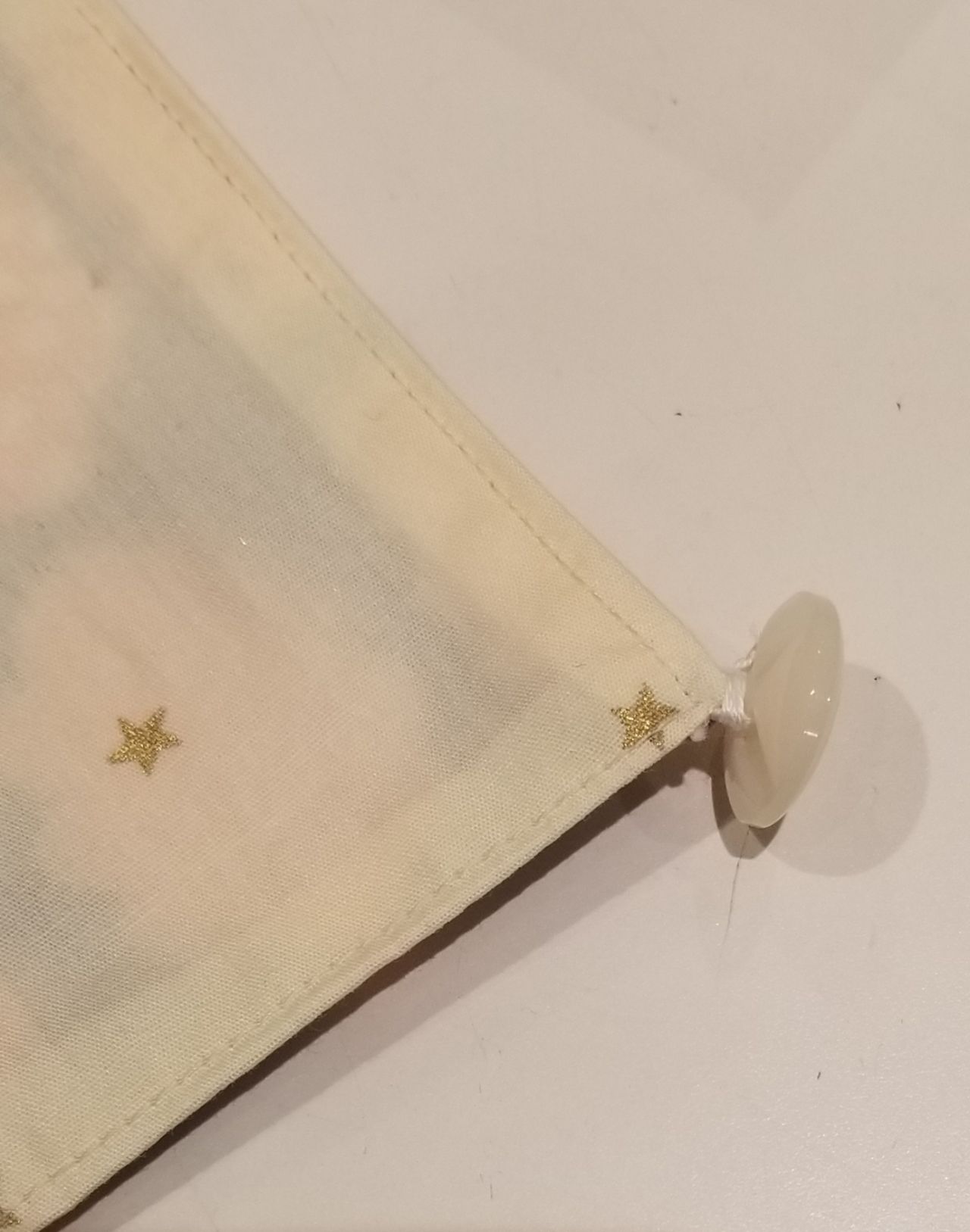 ⑦⑤で縫い止めた所に、ボタンをかけます