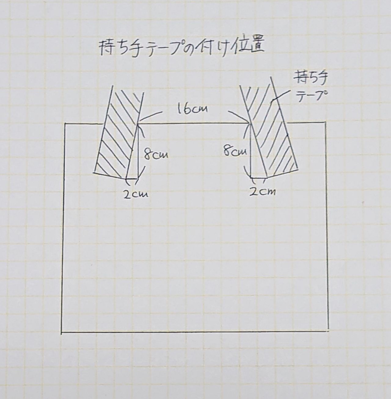 幅が広いテープなので持ちやすいように中央部分を15cm位、半分に折って縫い止めます。