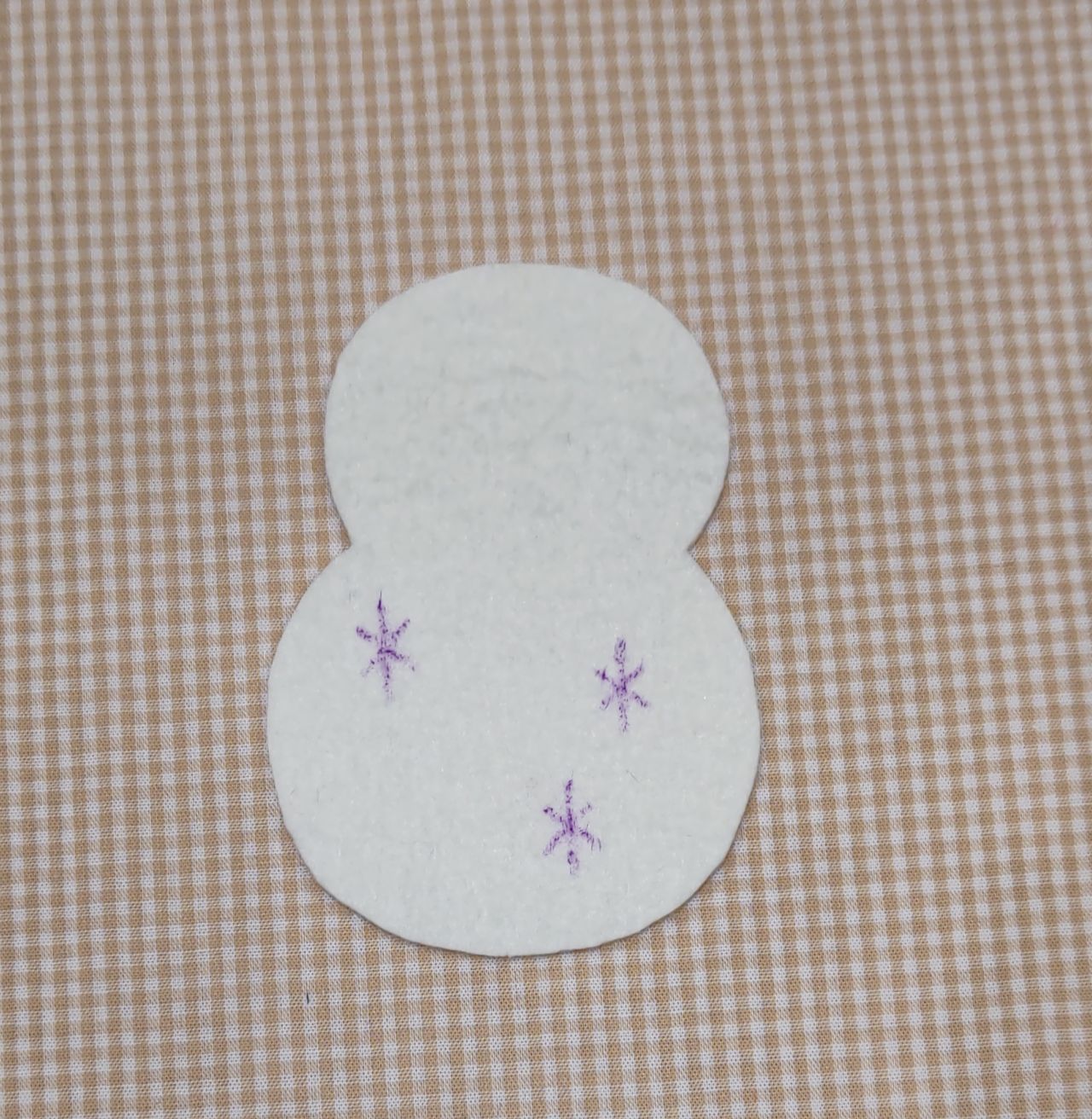 ③雪だるまにワンポイントの刺しゅうをします。