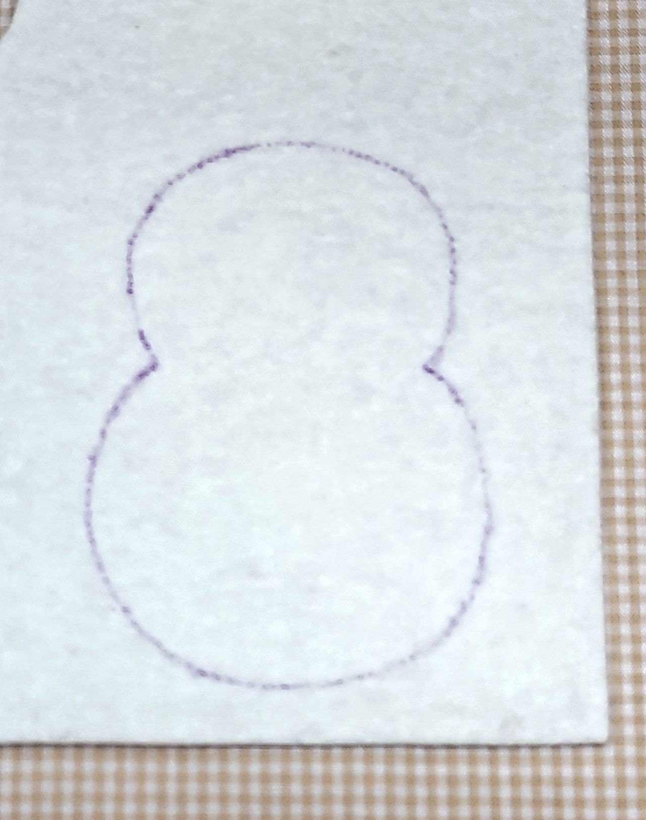 ②チャコペンでフェルトに型紙を写しカットします。(同じ形2枚)