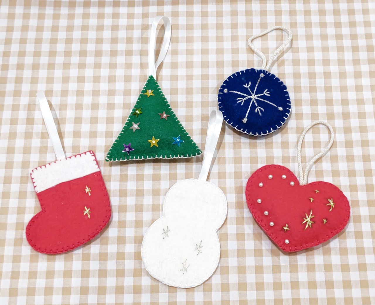 刺しゅうでワンポイント、クリスマスオーナメント