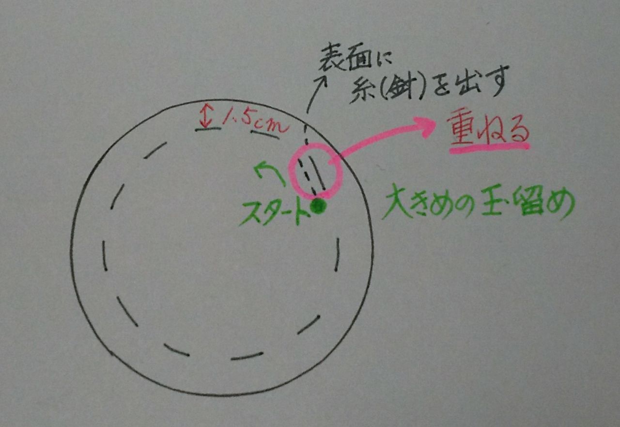 ⑥形を整えて絞り口面に丸ゴムを縫いとめる