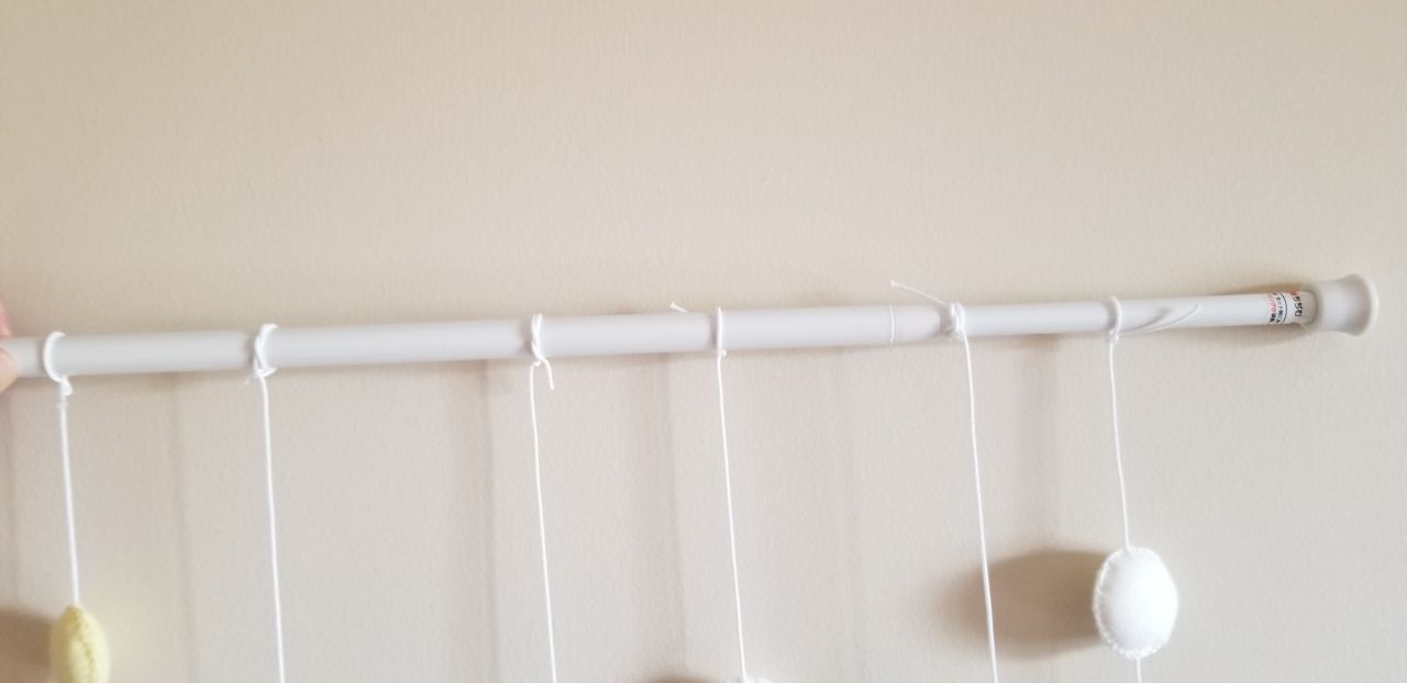 今回は突っ張り棒に結びました