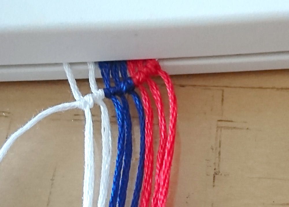 次の段はまた一番右側にある糸を軸糸として繰り返していきます。