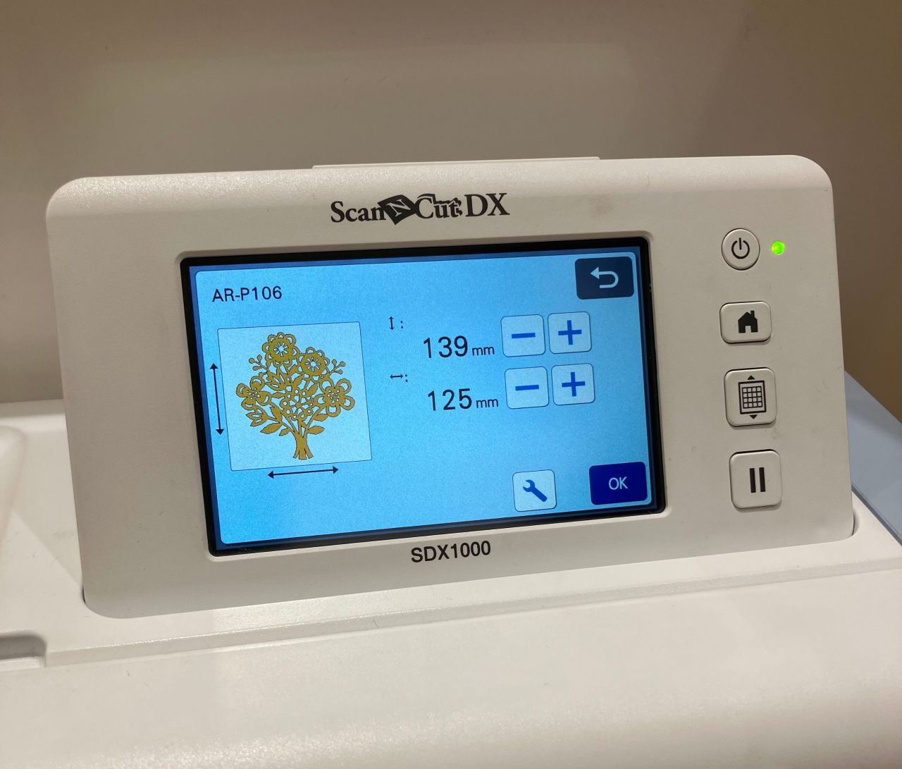 スキャンカットとは、ハサミやカッターを使わずに、紙や布を好きな形にカットできるカッティングマシンです。スキャナー内蔵なのでパソコンが無くてもオリジナルデータが作成出来ます。