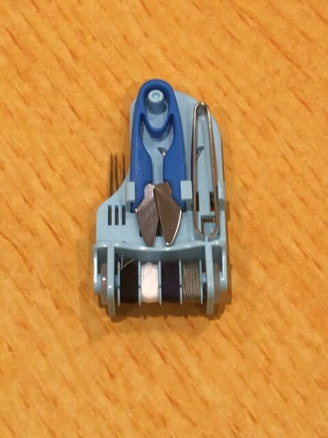 小さい空間にセットされた糸切りハサミ、針(3本).糸通し、4色ミニ糸セット、安全ピン、ボタン2個、なんと糸抜き!の7点はどんなに揺れても中身がバラバラに…なんてことにはなりません。