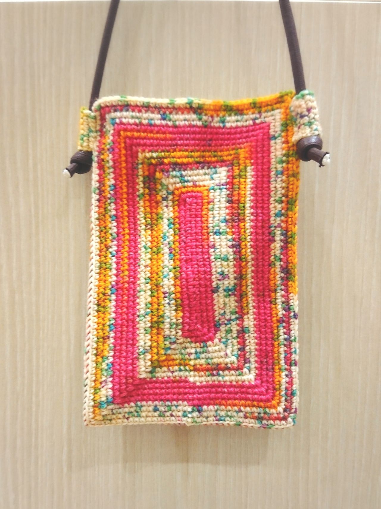 中心からぐるぐる四角に編んでるので、Opal毛糸の模様が面白く出ました( ☆∀☆)