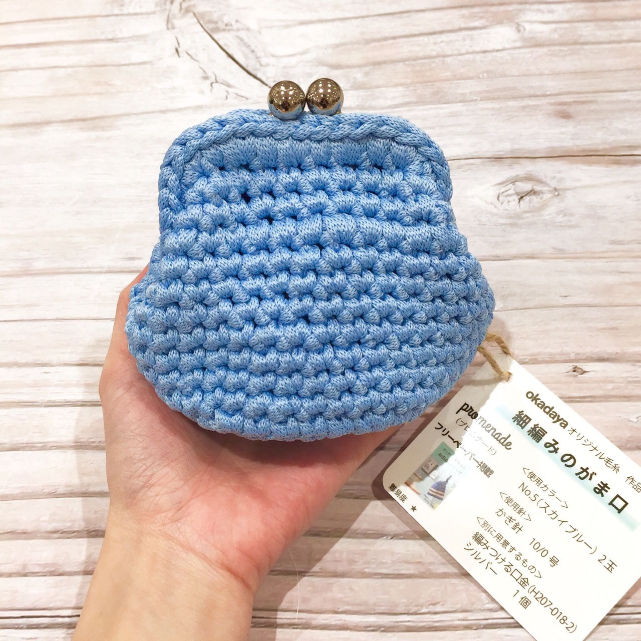 ぷっくりコロンと可愛いがま口は、編みつける口金を使用しているので、縫い糸やボンド等を使用せず、口金をつけることが出来ます(=^ェ^=)♪