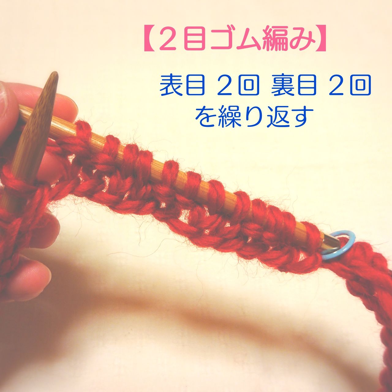 2目ゴム編みなので、4の倍数になるようにすると良いでしょう☆