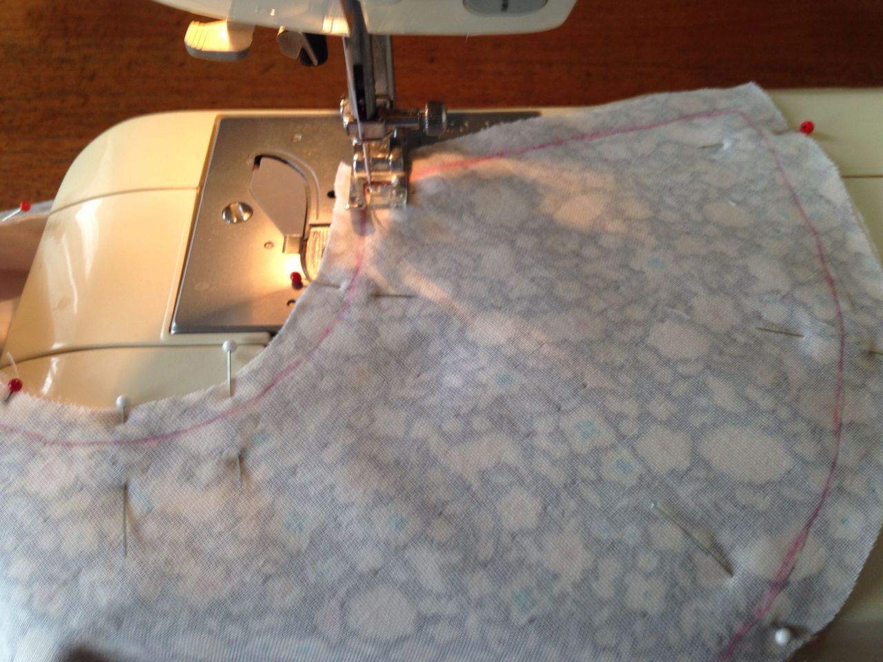 まず、裁断した生地を中表に合わせ、返し口を残して縫います
