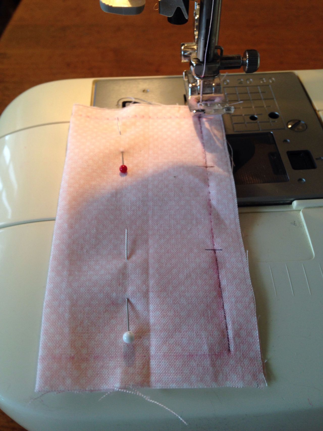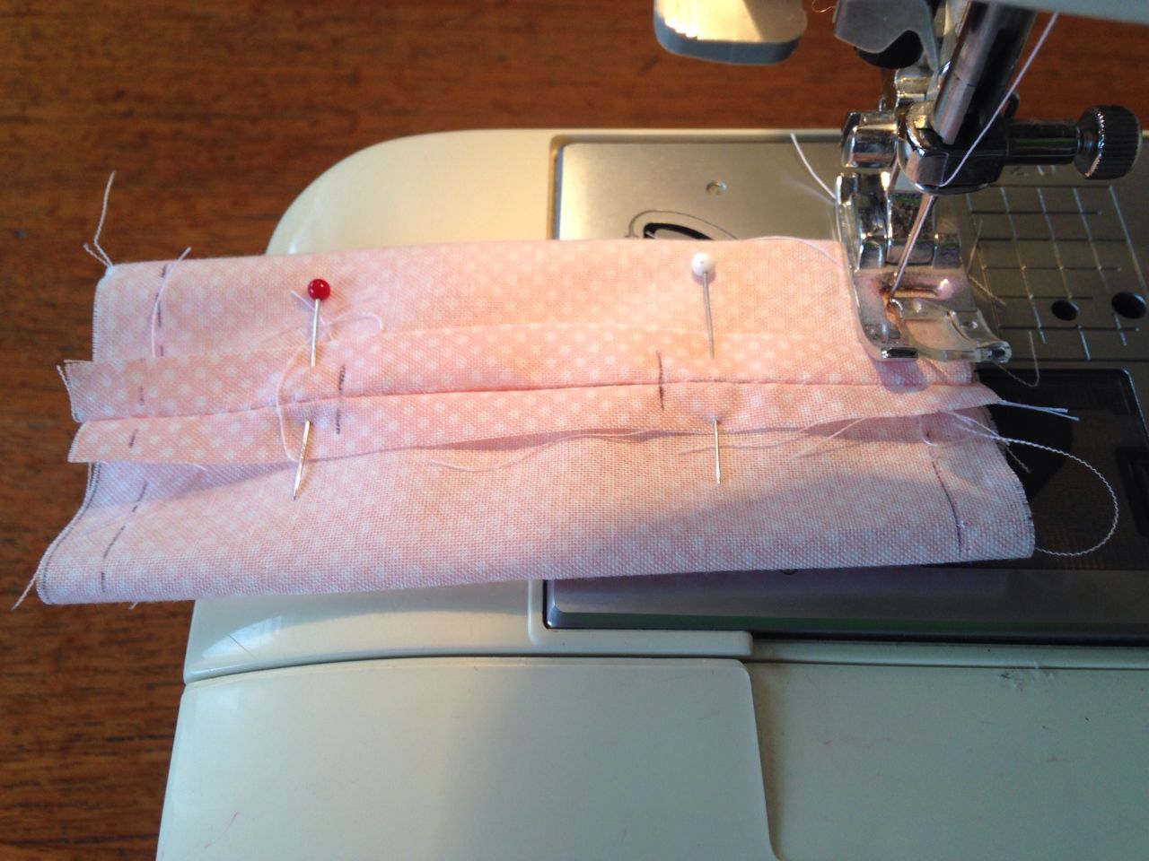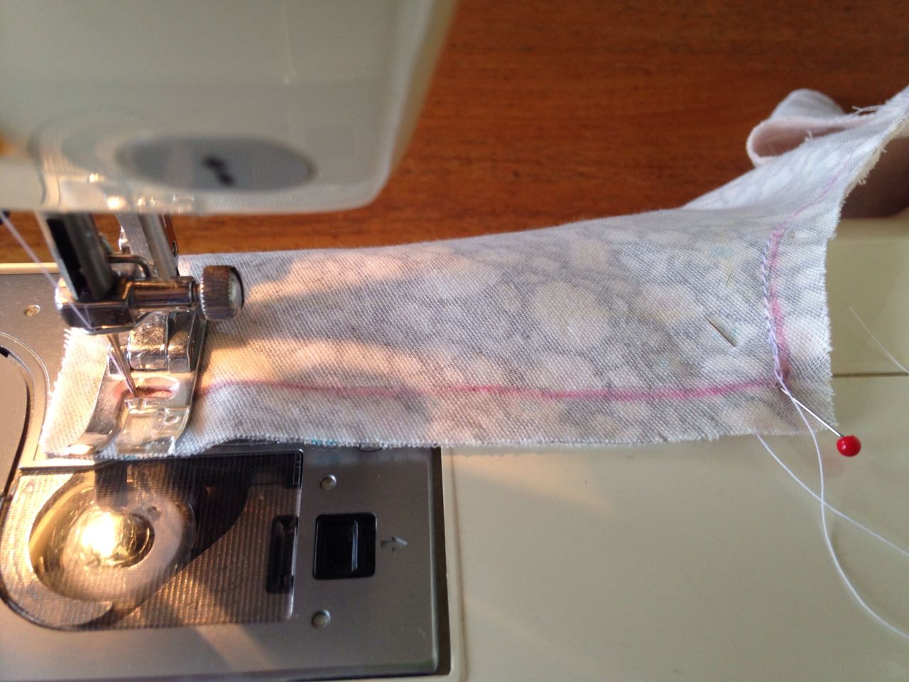 縫い代を上にもってきてアイロンをかけ、両端を縫います。