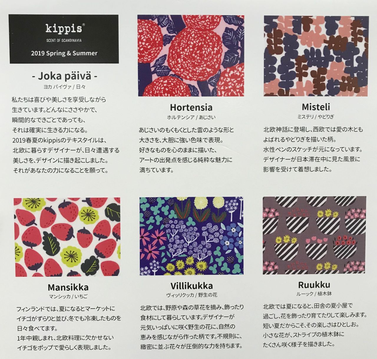 ちなみにkippisとは、フィンランド語で「乾杯」という意味の、北欧で活躍するデザイナーの方々が手掛けるテキスタイルブランドです。