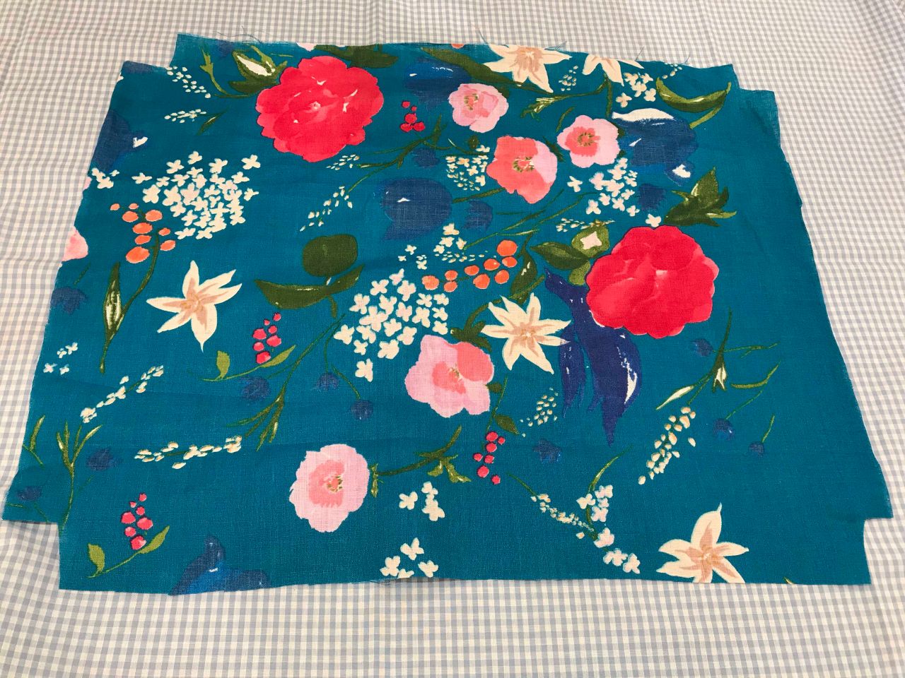 生地のお好みの部分を約40×50cmでカットします。(仕上がり30×40cmの場合)