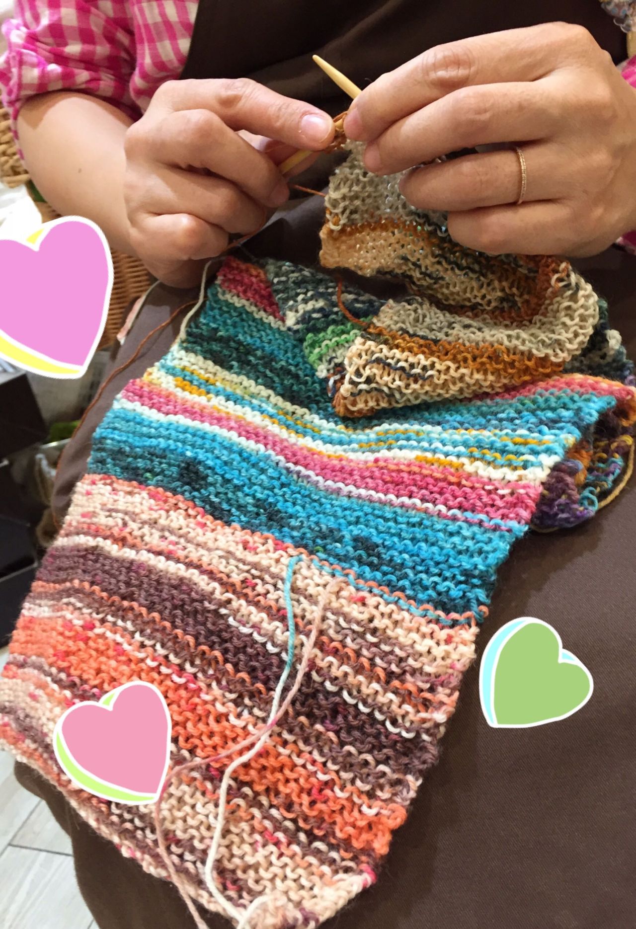 編んでいくだけで次々と色が変わっていく糸なのでメリヤス編みして、編みつなぐだけでもとってもキュート☆
