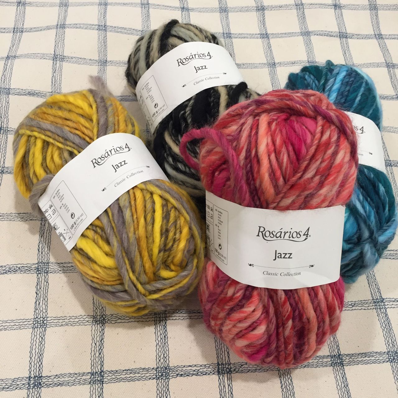 こちらのJAZZ(ジャズ)はカラフルな段染めの超極太タイプの毛糸なので編み目を気にせずザクザク編んでも大丈夫なのです!