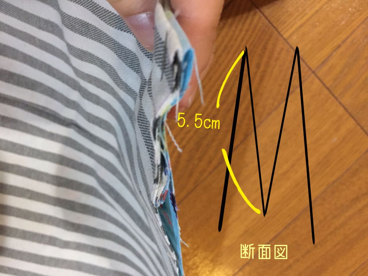 ⑥⑤で縫ったところを5.5cm