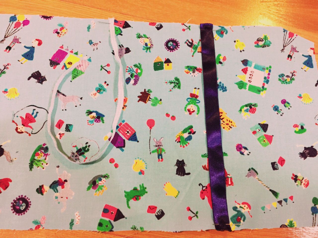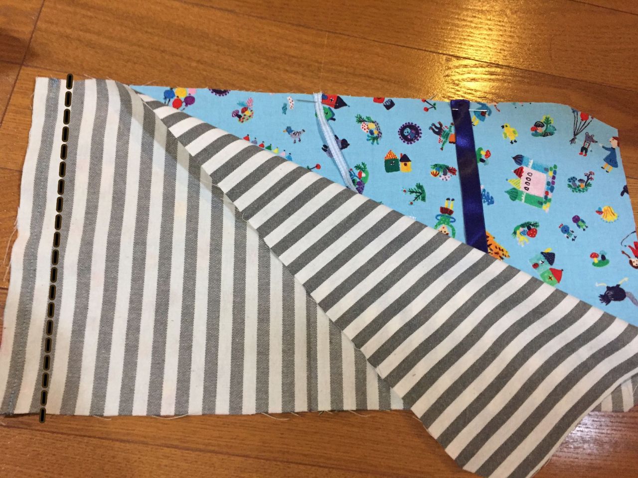 ⑤中表に生地を合わせて