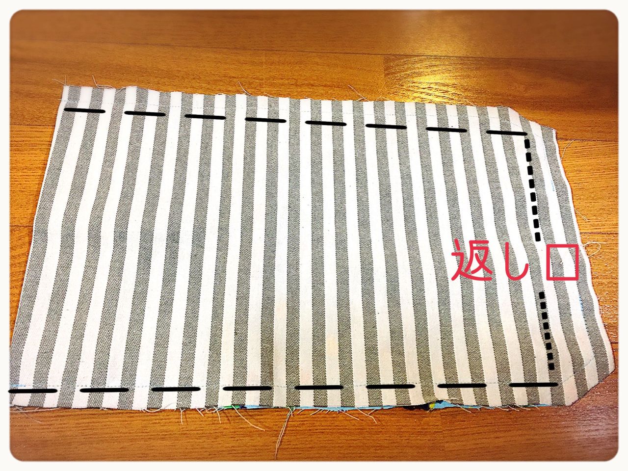 ⑦点線の位置を布端1cmで縫います。