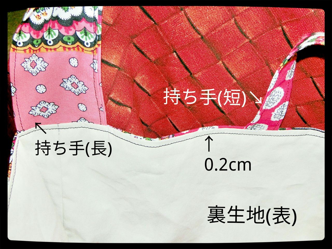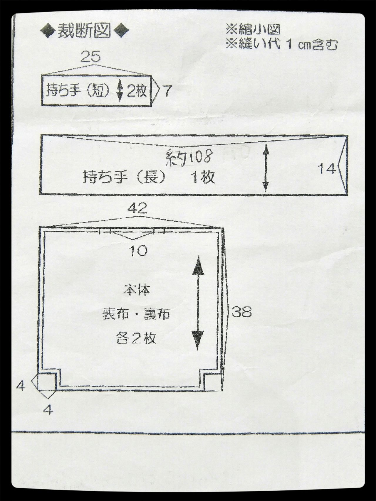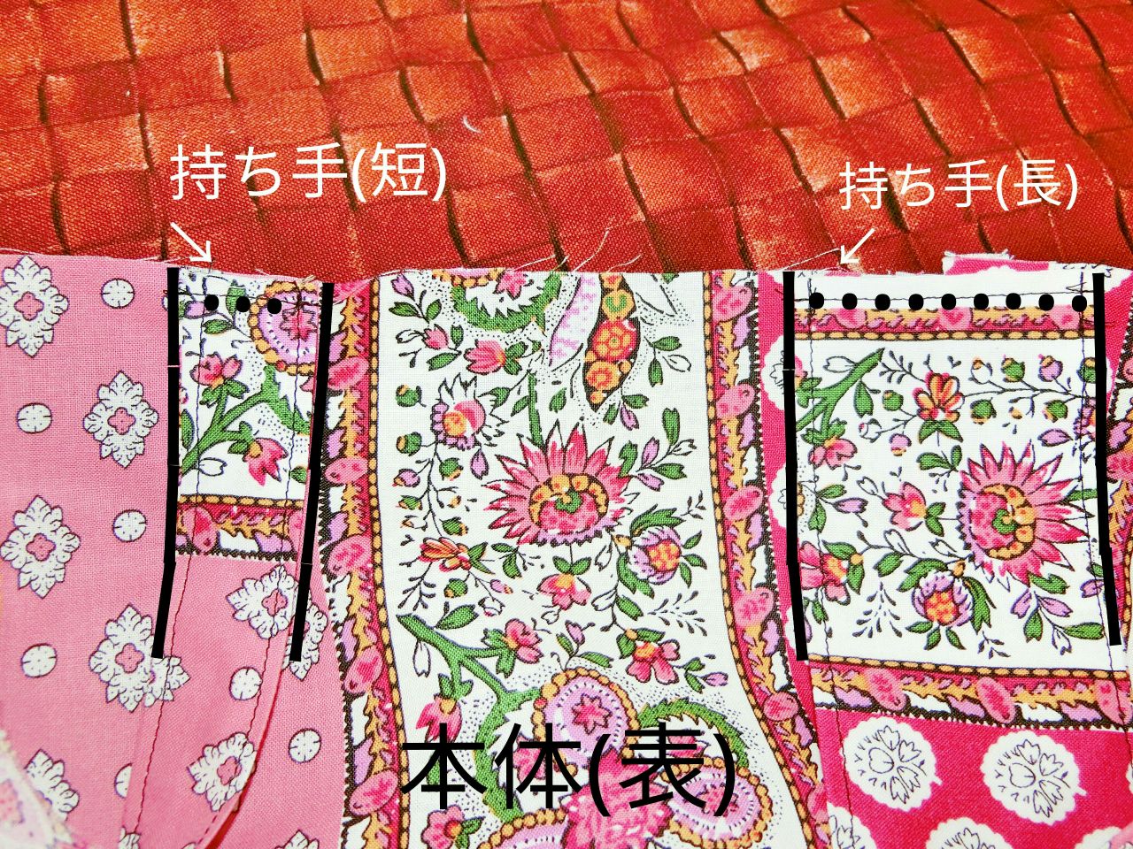 ↑裁断図を参照にして(今回は持ち手(長)を少し長めにしてあります)