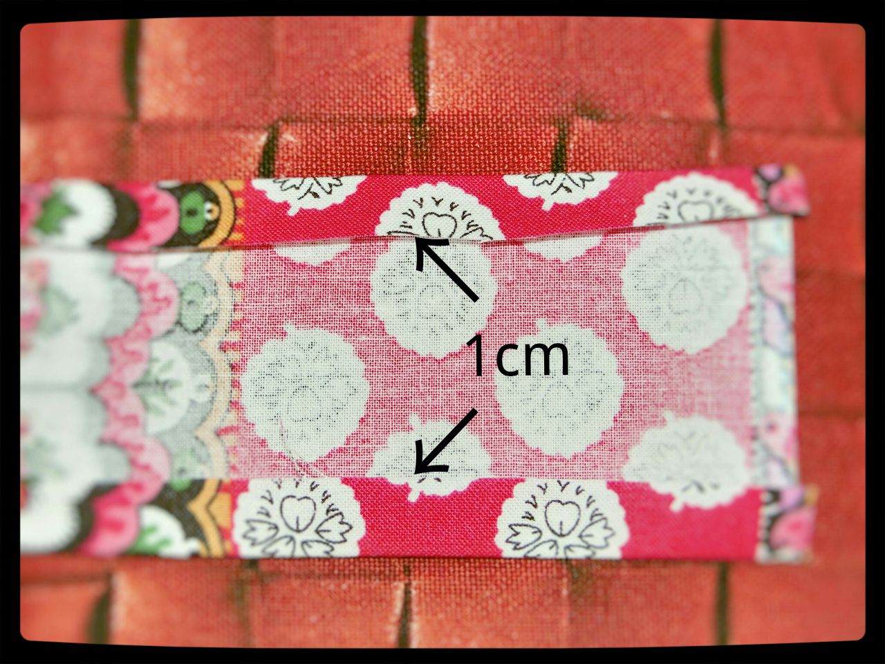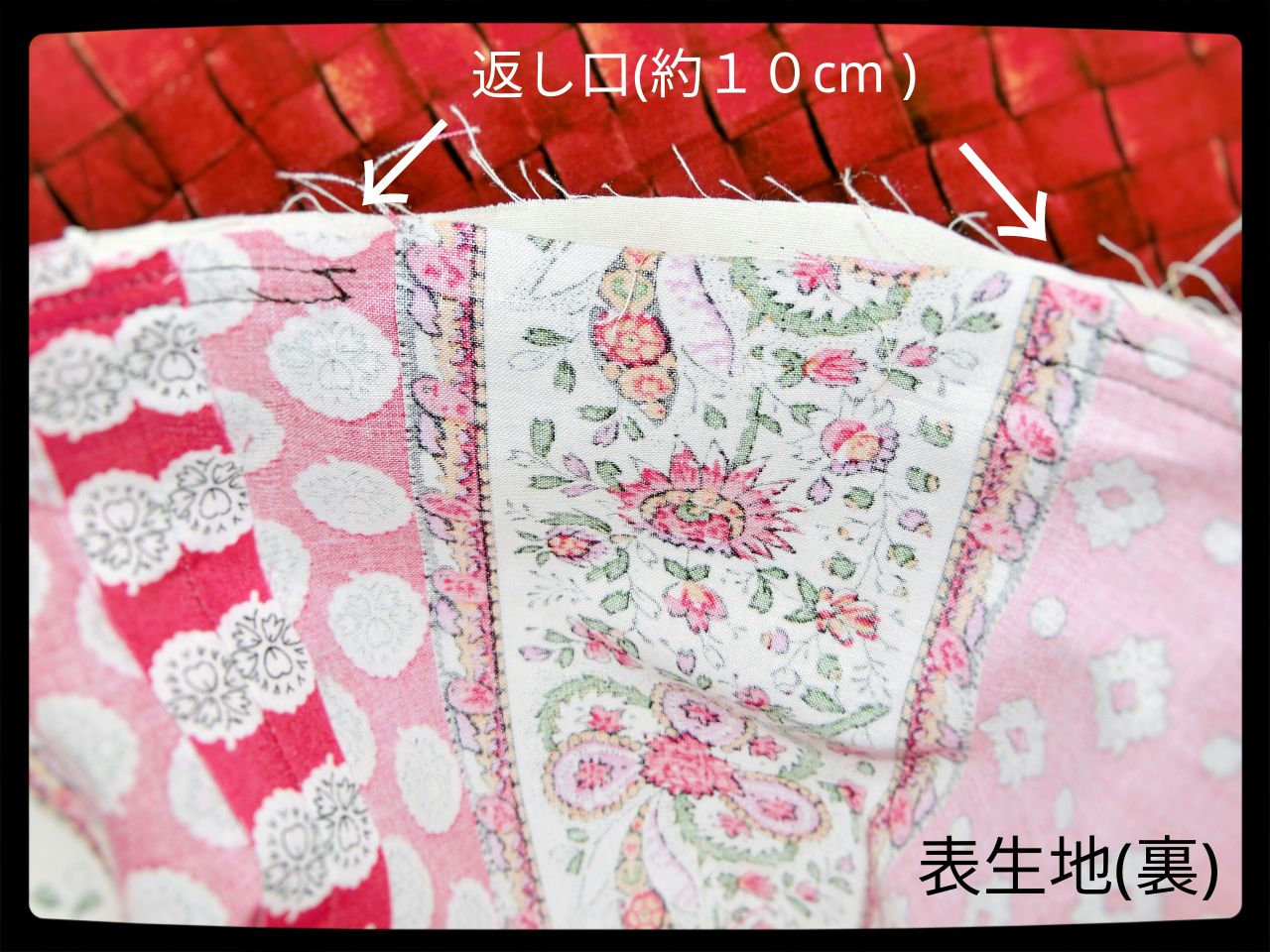表布上端に重ねて0.5cm (点線部分)縫います。