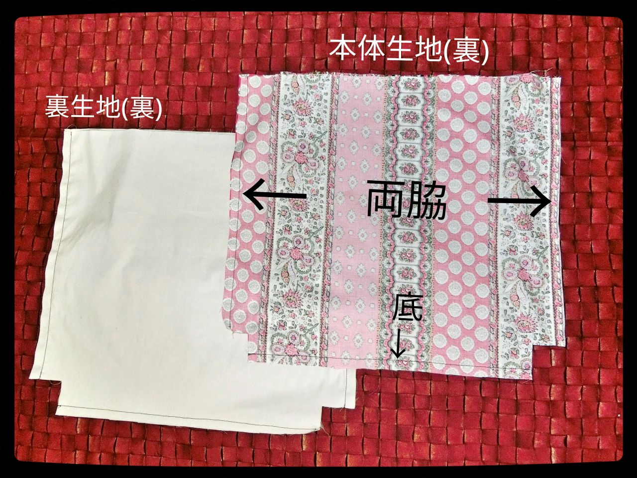 本体生地と裏生地をそれぞれ中表に重ねて、