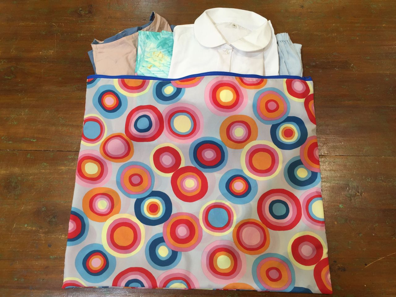 56㎝ファスナーをカットせずに使っているので、洋服も、バスタオルもたくさん入ります。