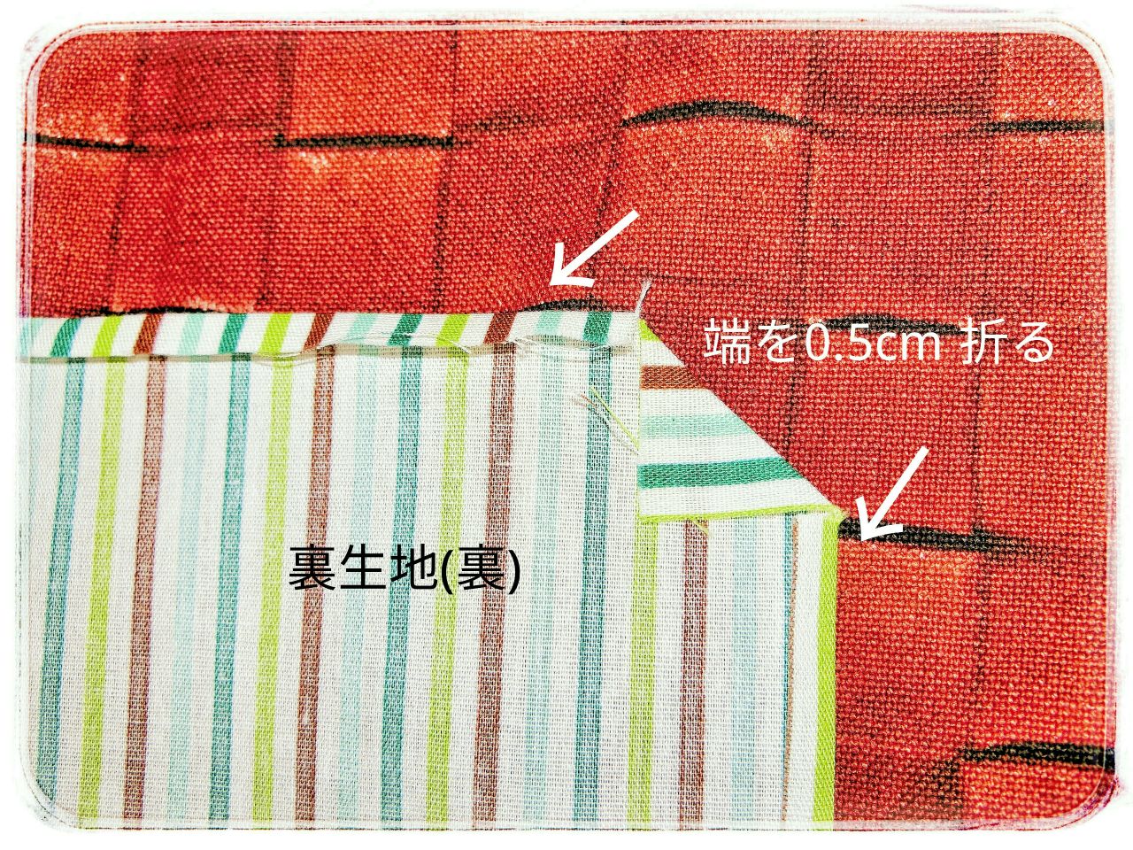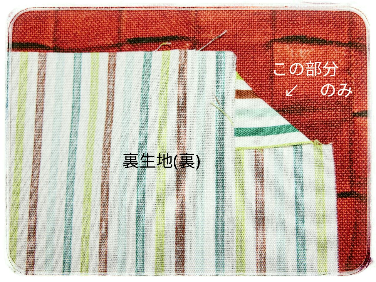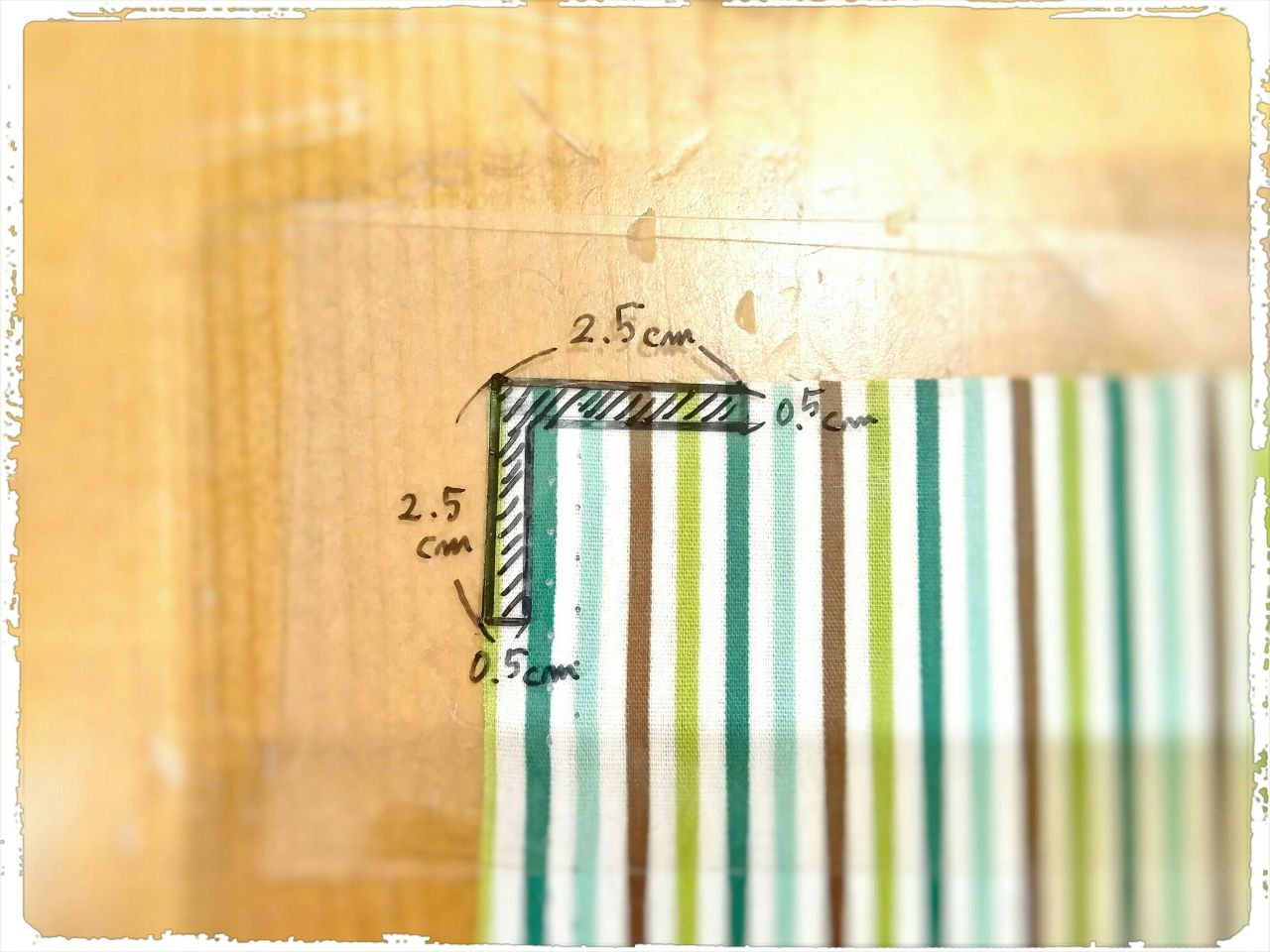 裏(縁)生地の四隅を上記のサイズにカットする。