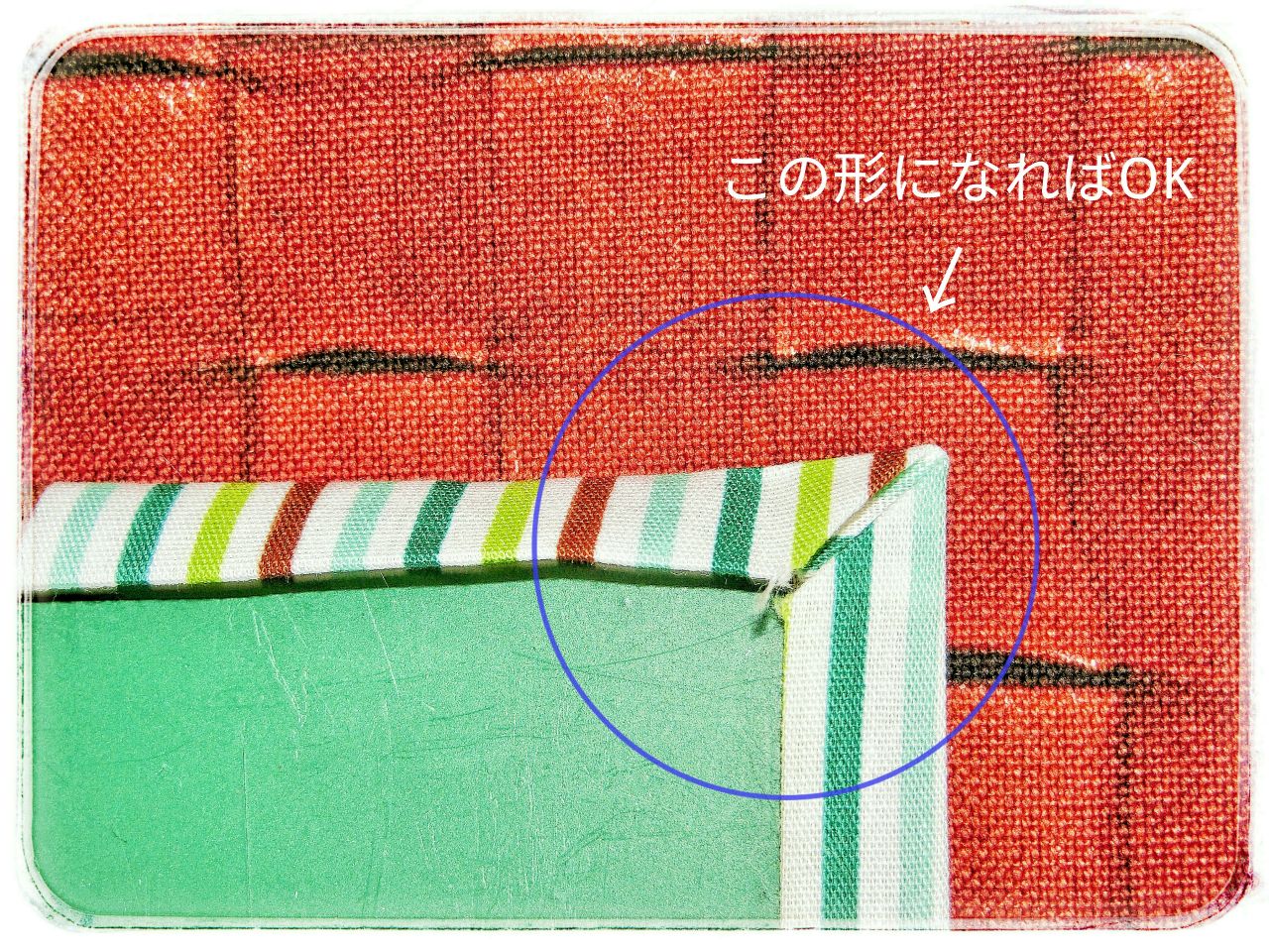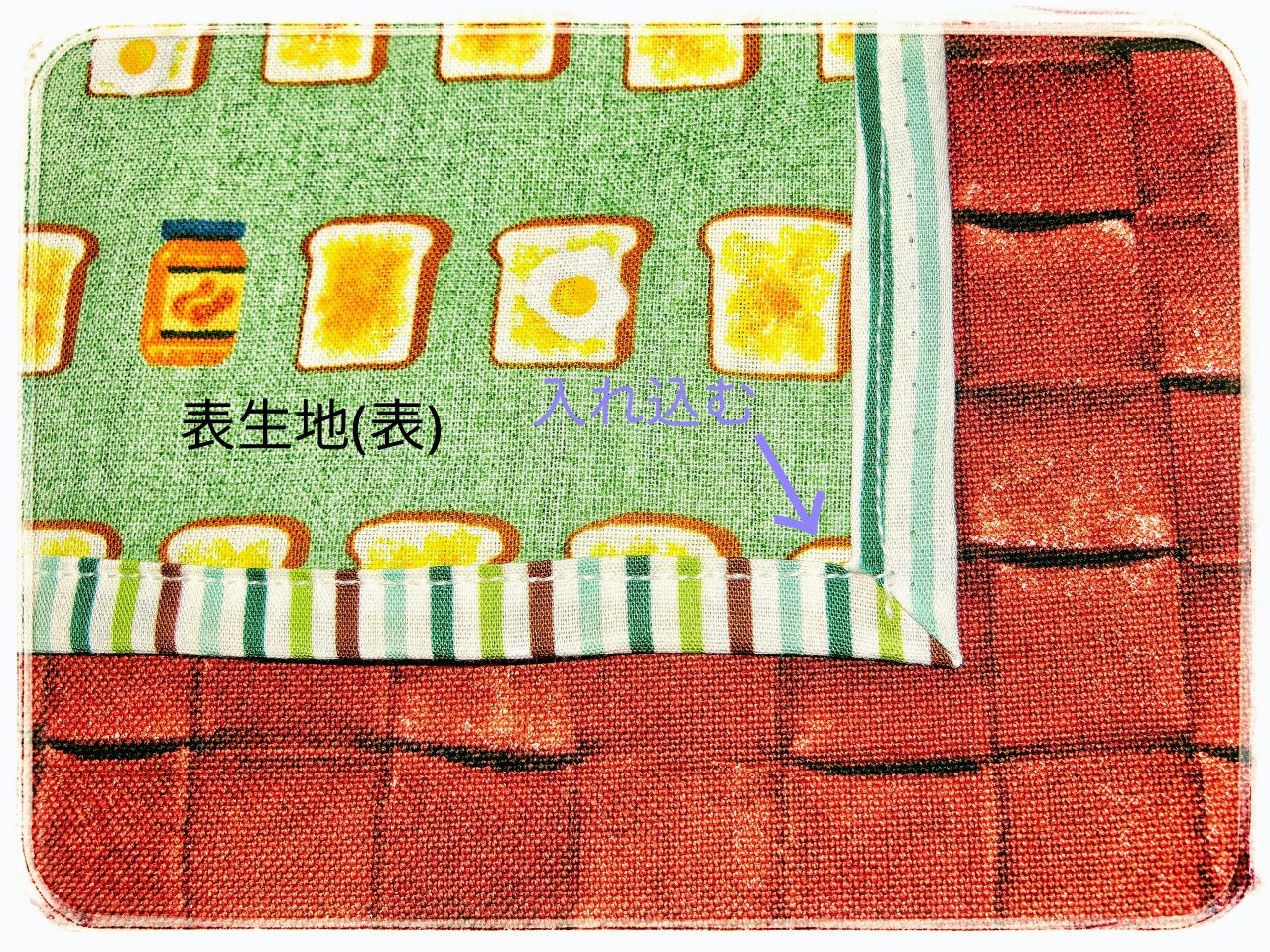 最後に表(本体)生地を角に入れ込んで、縁をステッチすれば…