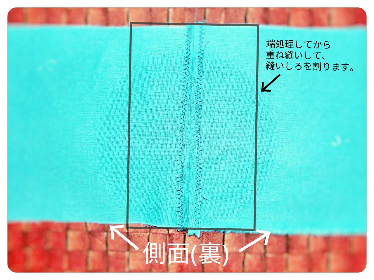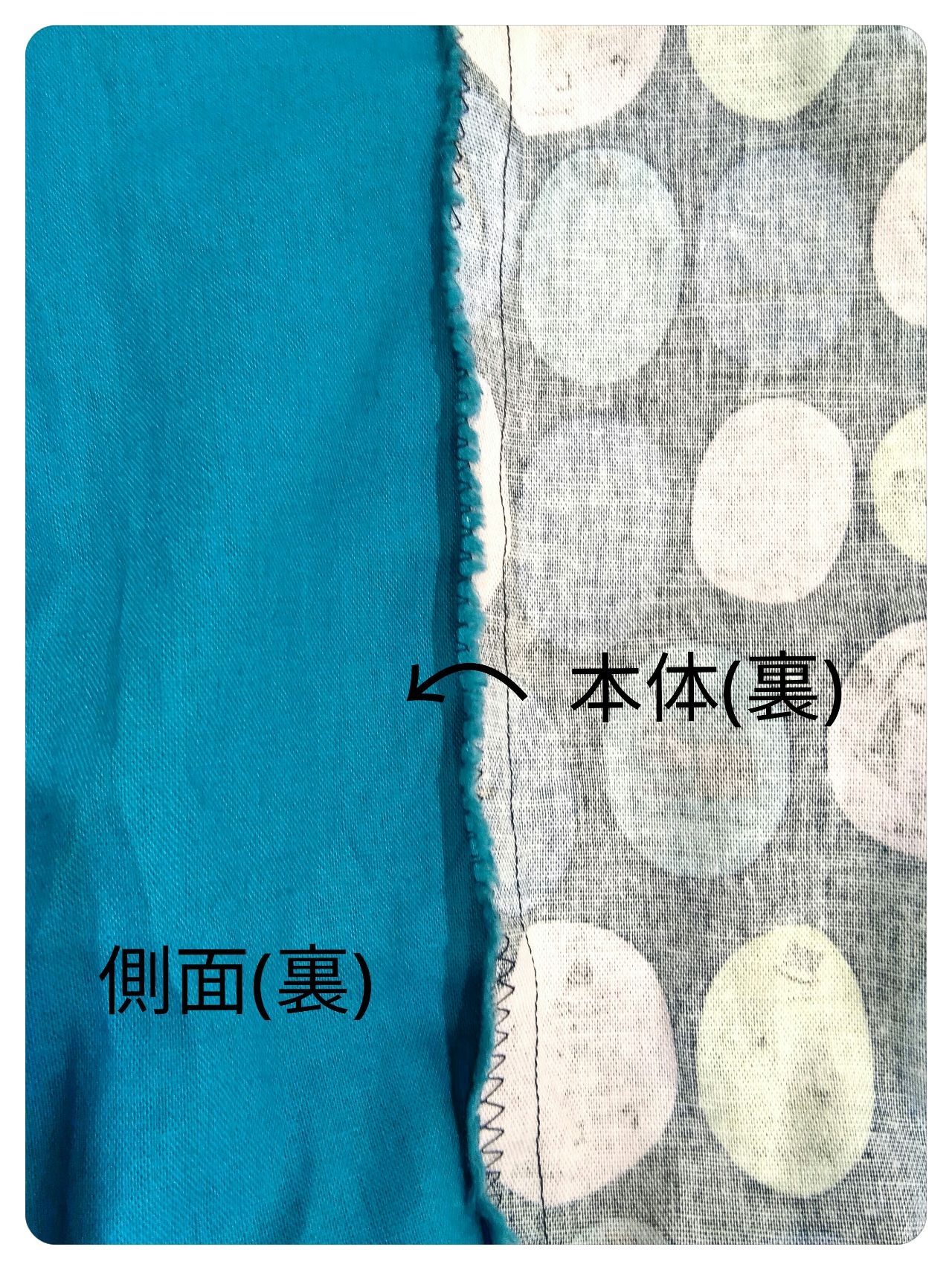 側面の底をジグザグミシン(またはロックミシン)で端処理して、