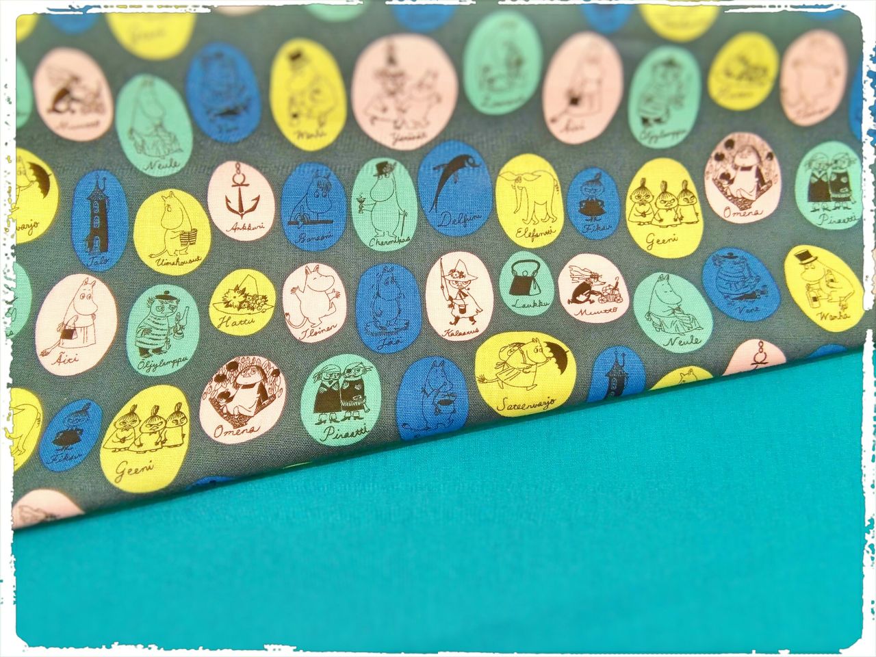 プリント生地(ム―ミン 綿85% 麻15%  110cm幅  m/¥1800+税)×60cm