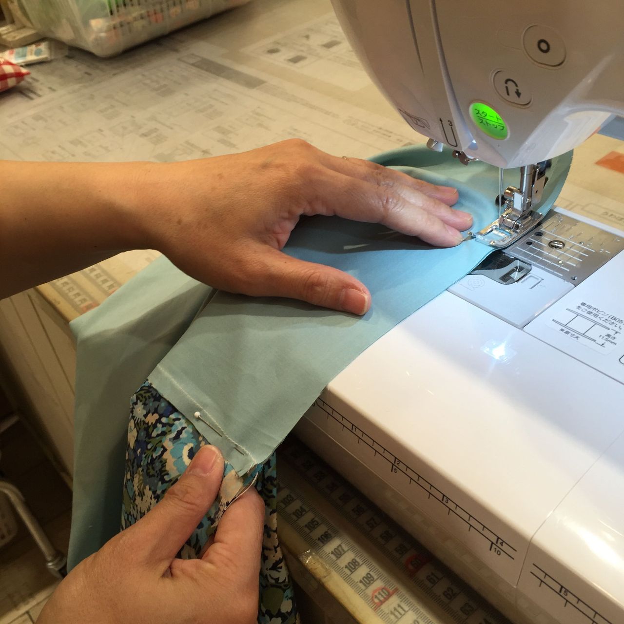 縫った後縫い代はリバティ側に倒してアイロンをかけます。