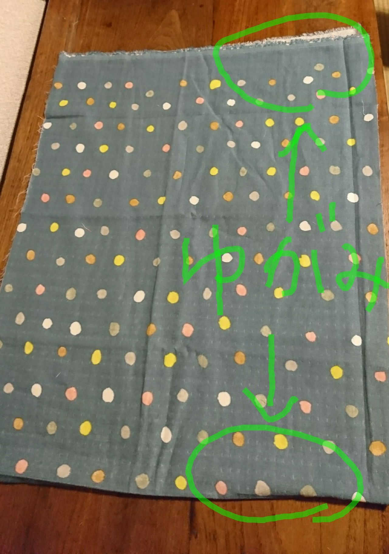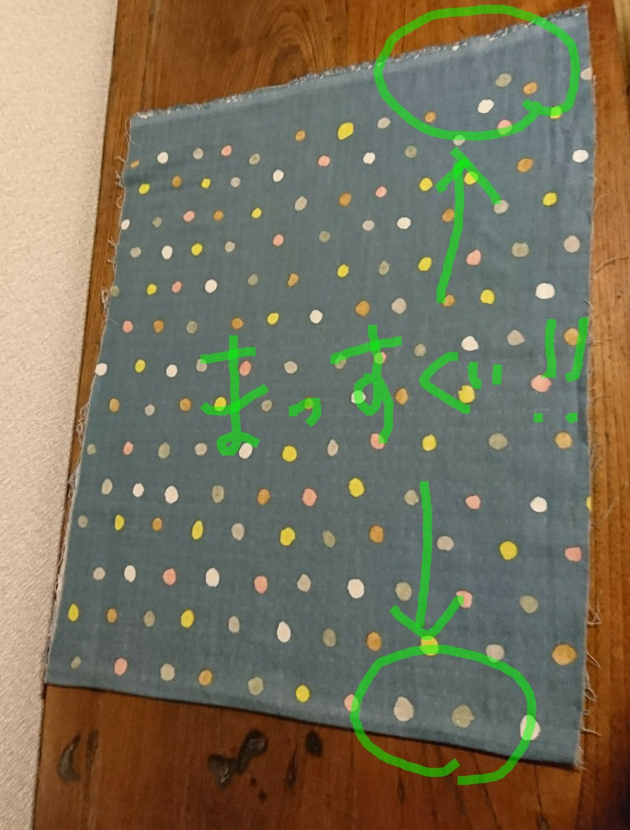 生地をよーく見ると縦に点々の点線が走っています。その点線がまっすぐになるようにアイロンをかけましょう。