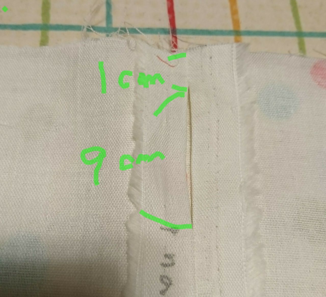 下(裾)…1cmずつの三つ折り