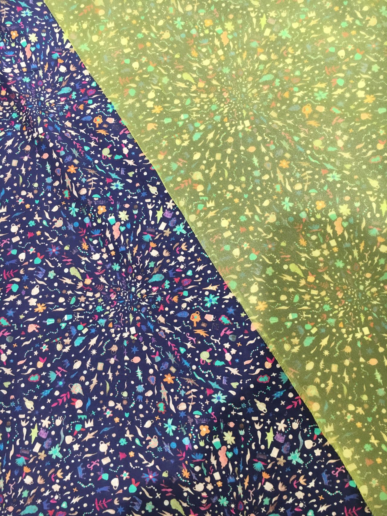 110cm巾の生地を2種類選び40cmづつ用意する。
