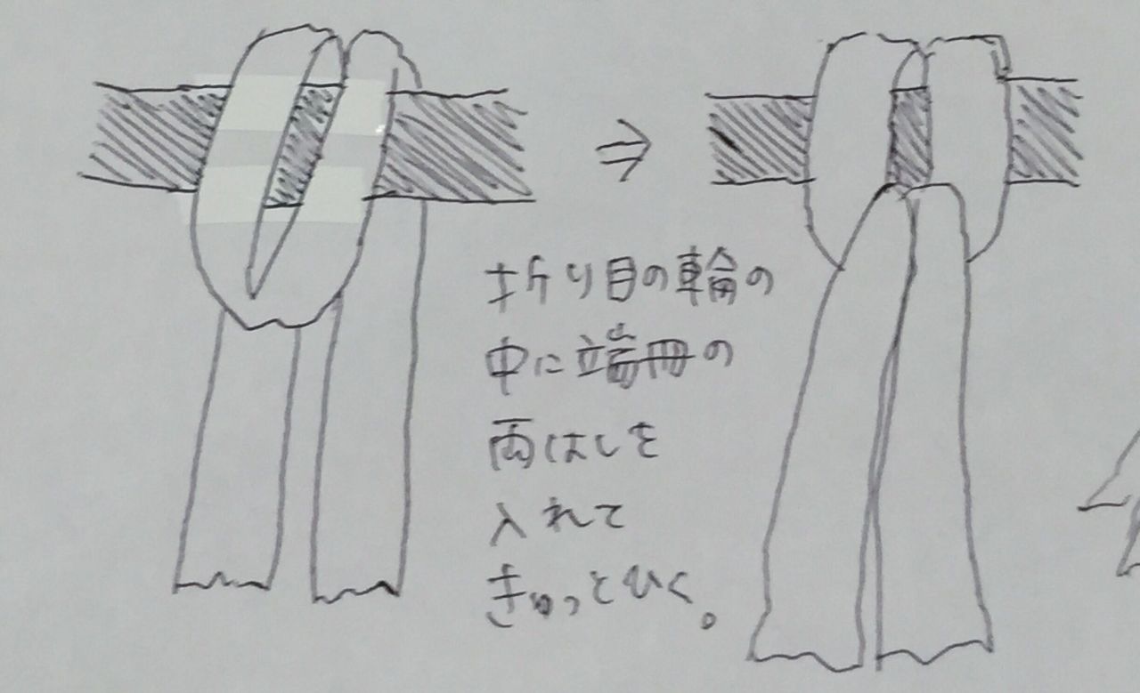 結び方は二つ折りにして、輪っかの中に短冊の端を通してキュッと締めるだけ!